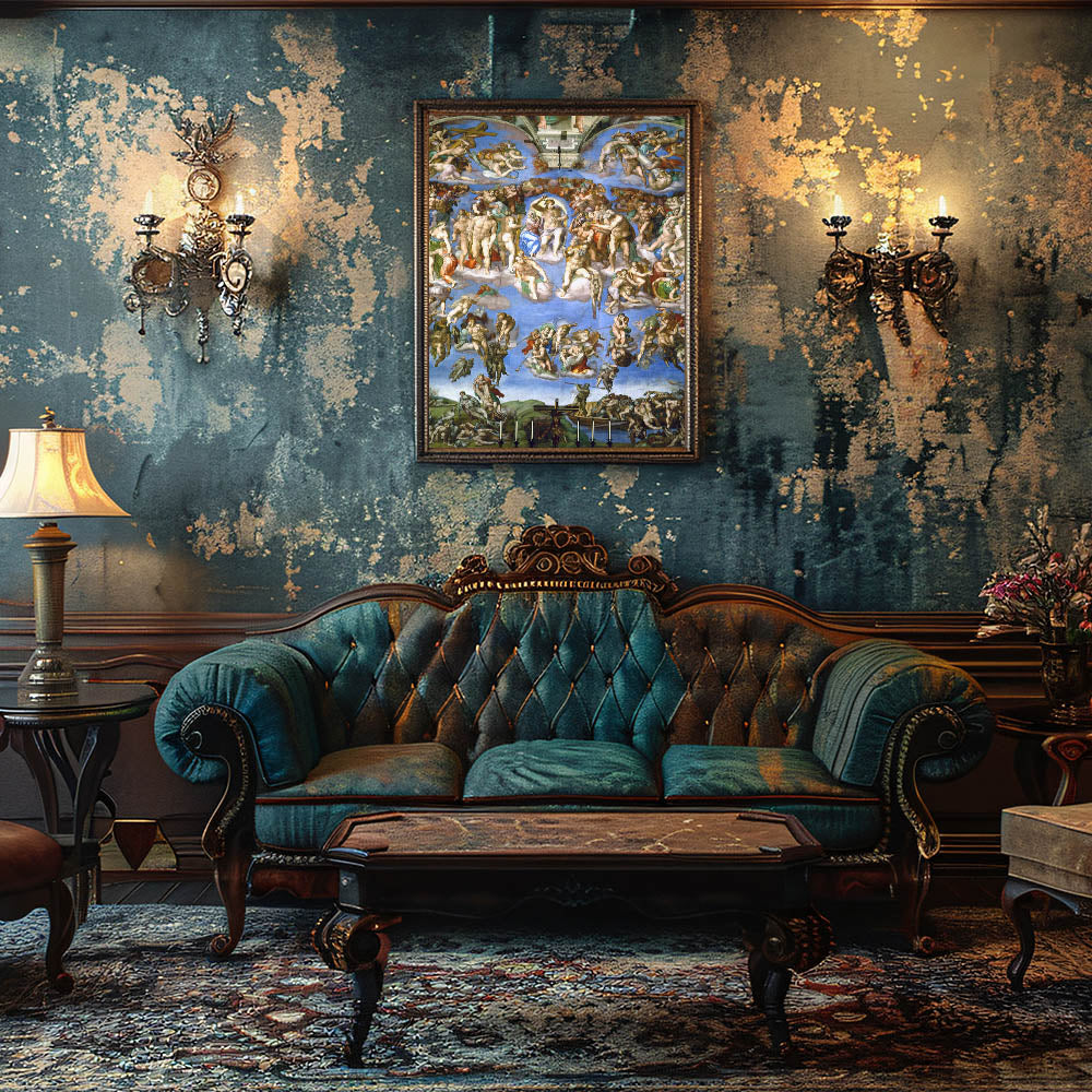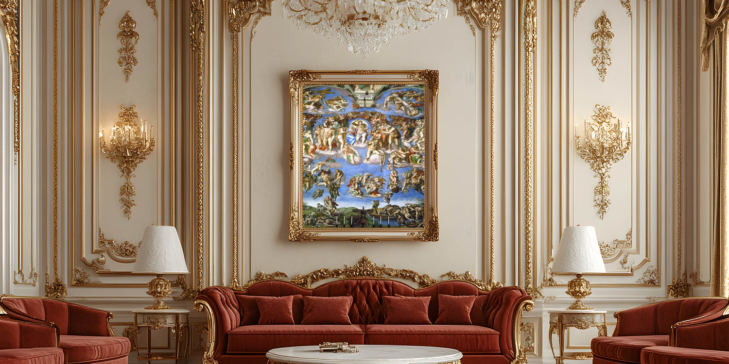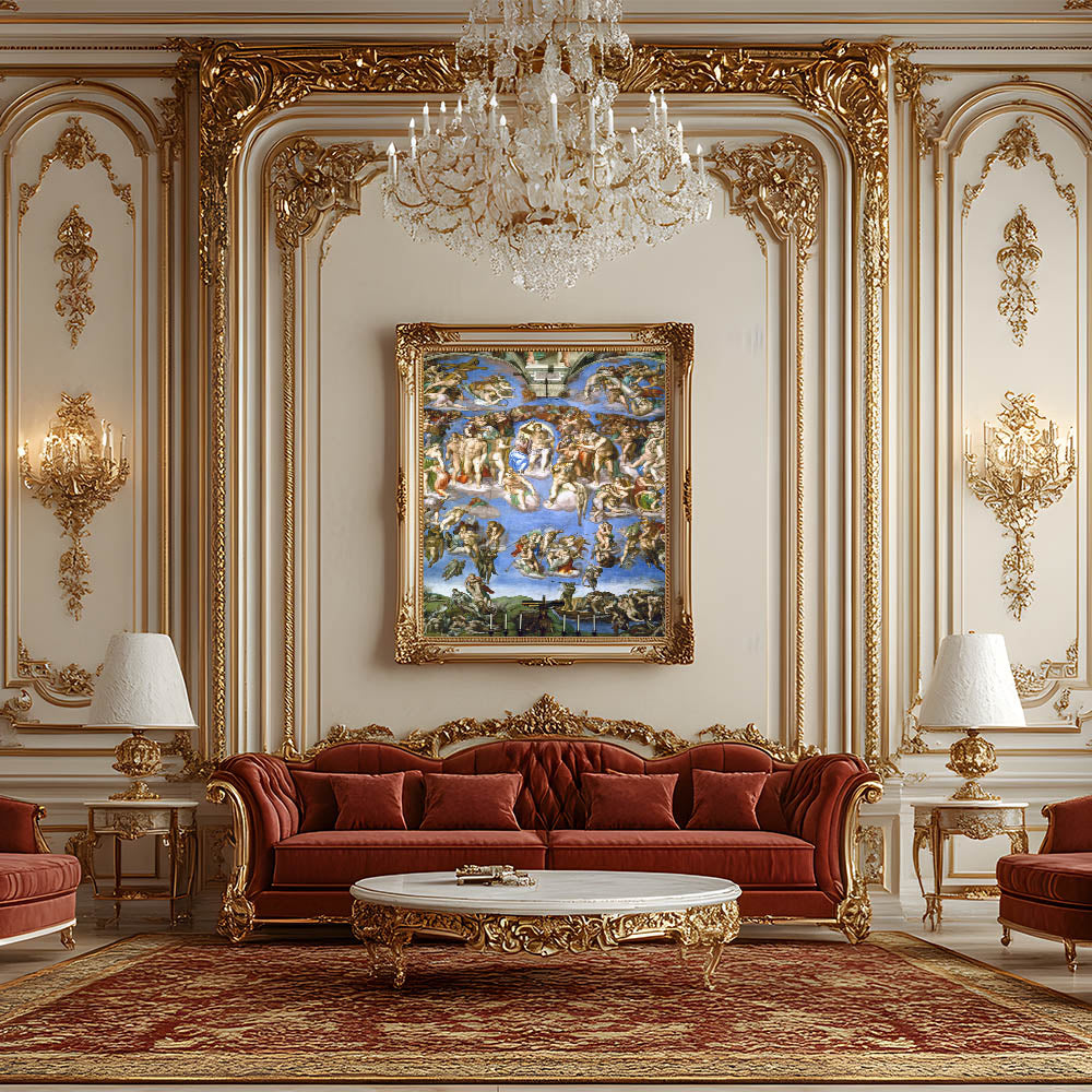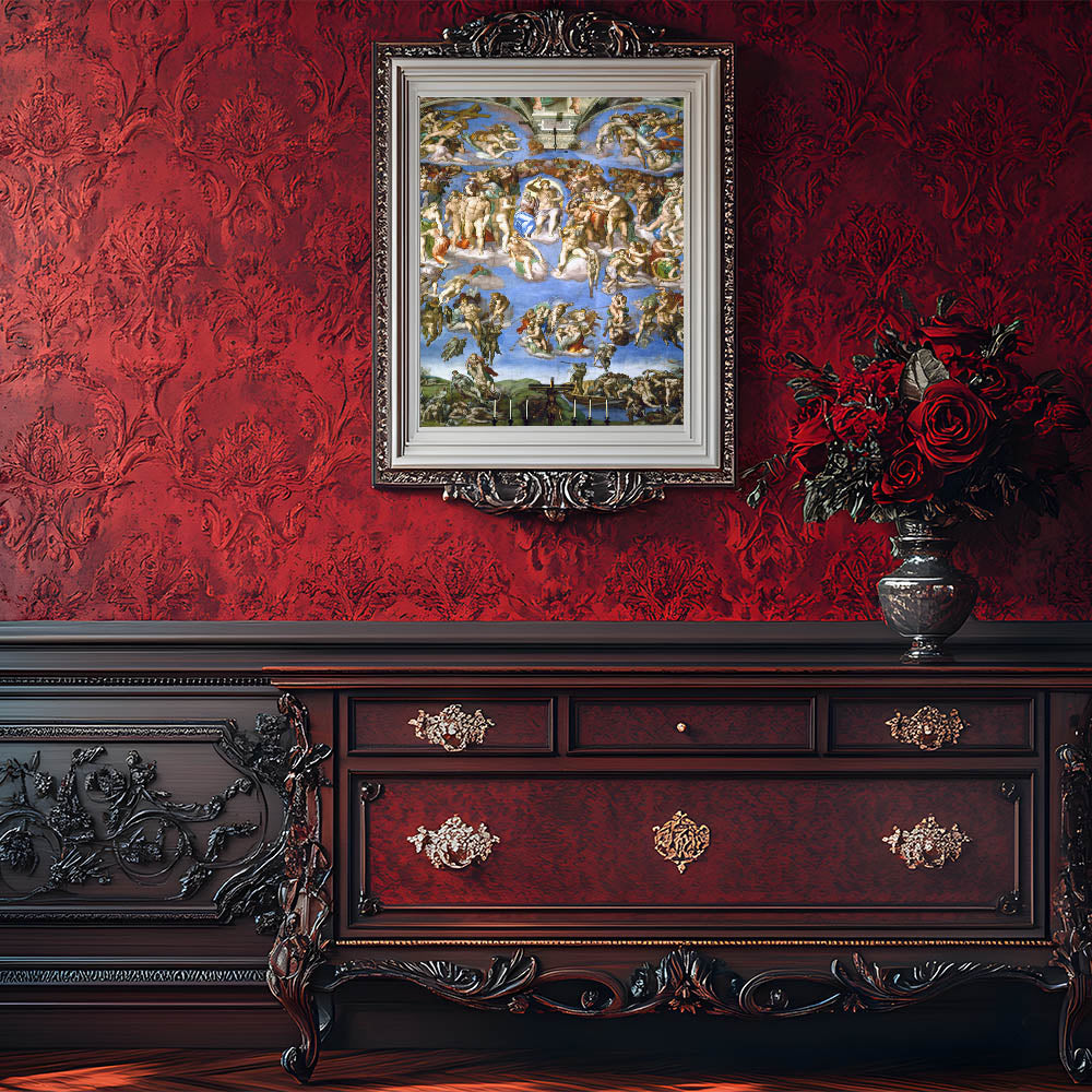 Immerse yourself in the grandeur of "The Last Judgment" by Michelangelo Buonarroti, a monumental fresco that dominates the Sistine Chapel’s altar wall. This masterpiece is a vivid depiction of the Second Coming of Christ and the final judgment of souls, illustrating Michelangelo’s unparalleled skill in capturing the human form and emotional intensity. The intricate composition, with its swirling clouds and dramatic figures, conveys both the beauty and power of classic Renaissance decor.