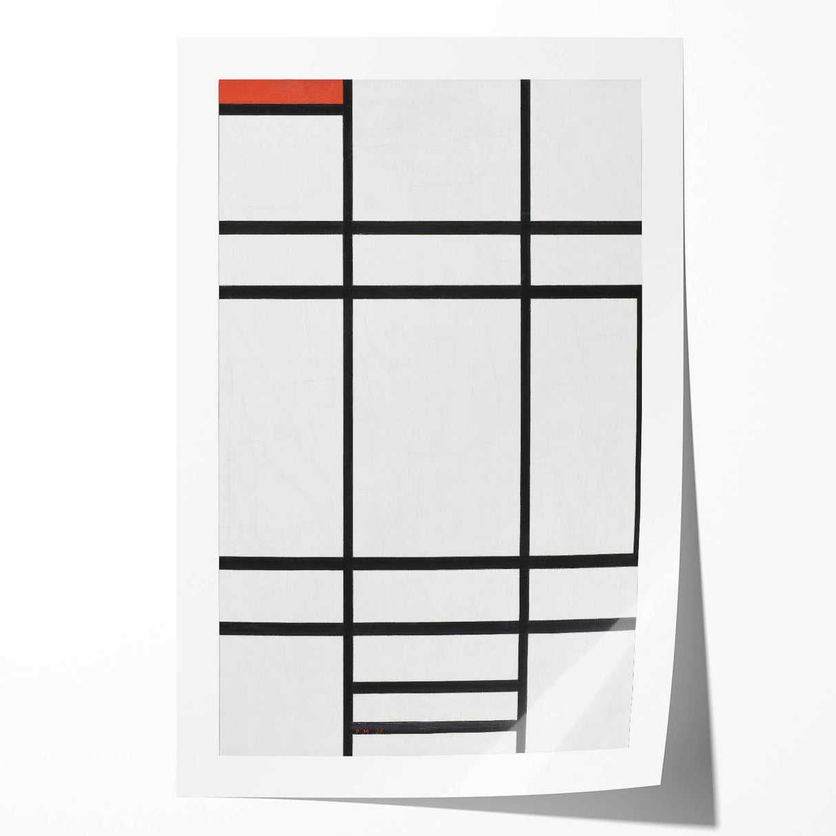 Add sleek sophistication to your decor with the "Composition in White, Red, and Yellow" Modern Wall Art. Inspired by Piet Mondrian's 1936 masterpiece, this abstract minimalist artwork uses bold black lines and vibrant blocks of red, yellow, and white to create a harmonious balance. Perfect for those who appreciate modern design elements and geometric abstraction.