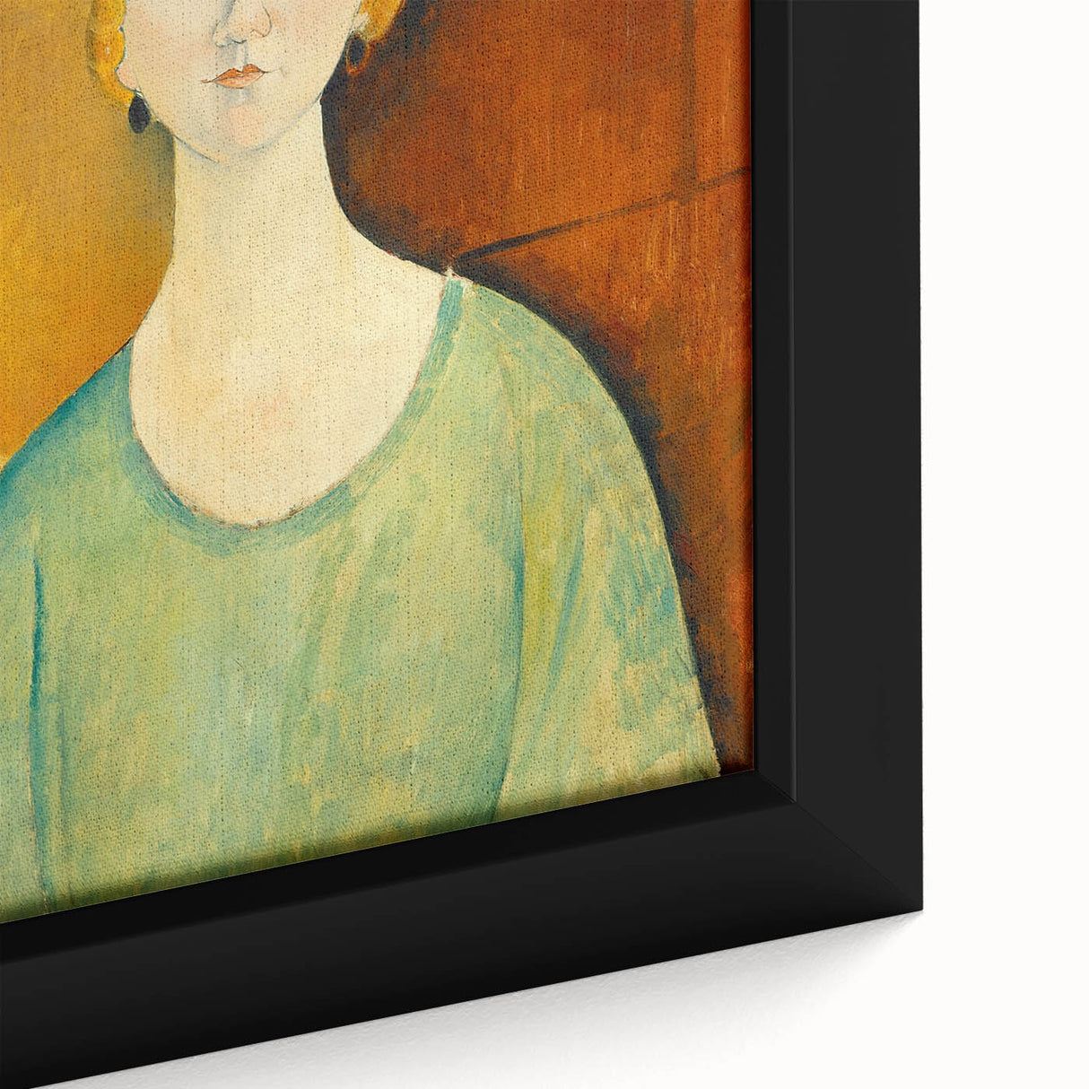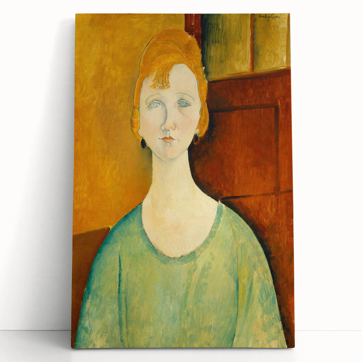 Enhance your decor with the timeless beauty of the "Girl in Green Blouse" Modern Wall Art. This captivating piece, inspired by Amedeo Modigliani's signature style, features soft yet vibrant tones, elongated forms, and subtle expressions. It effortlessly combines elegance with modern design elements, making it a centerpiece for any space.