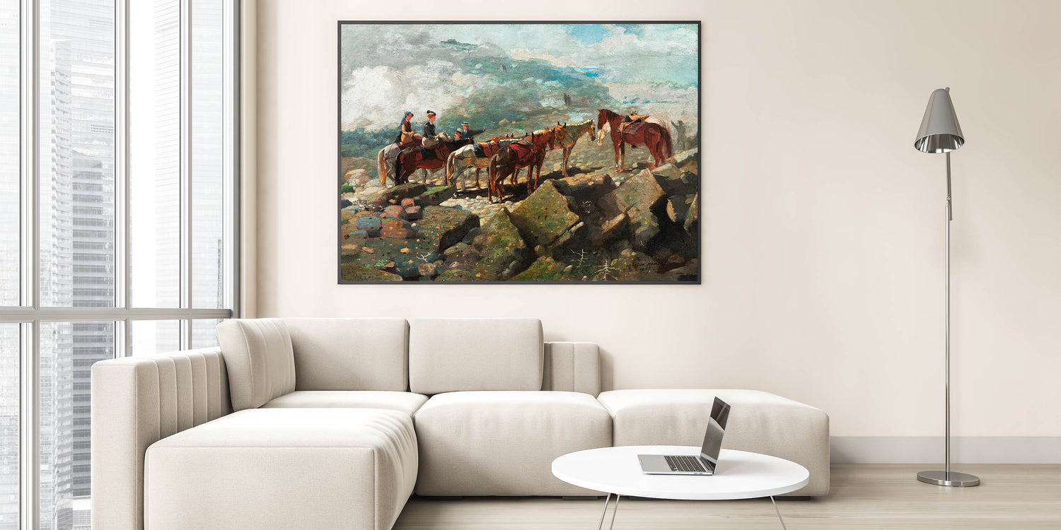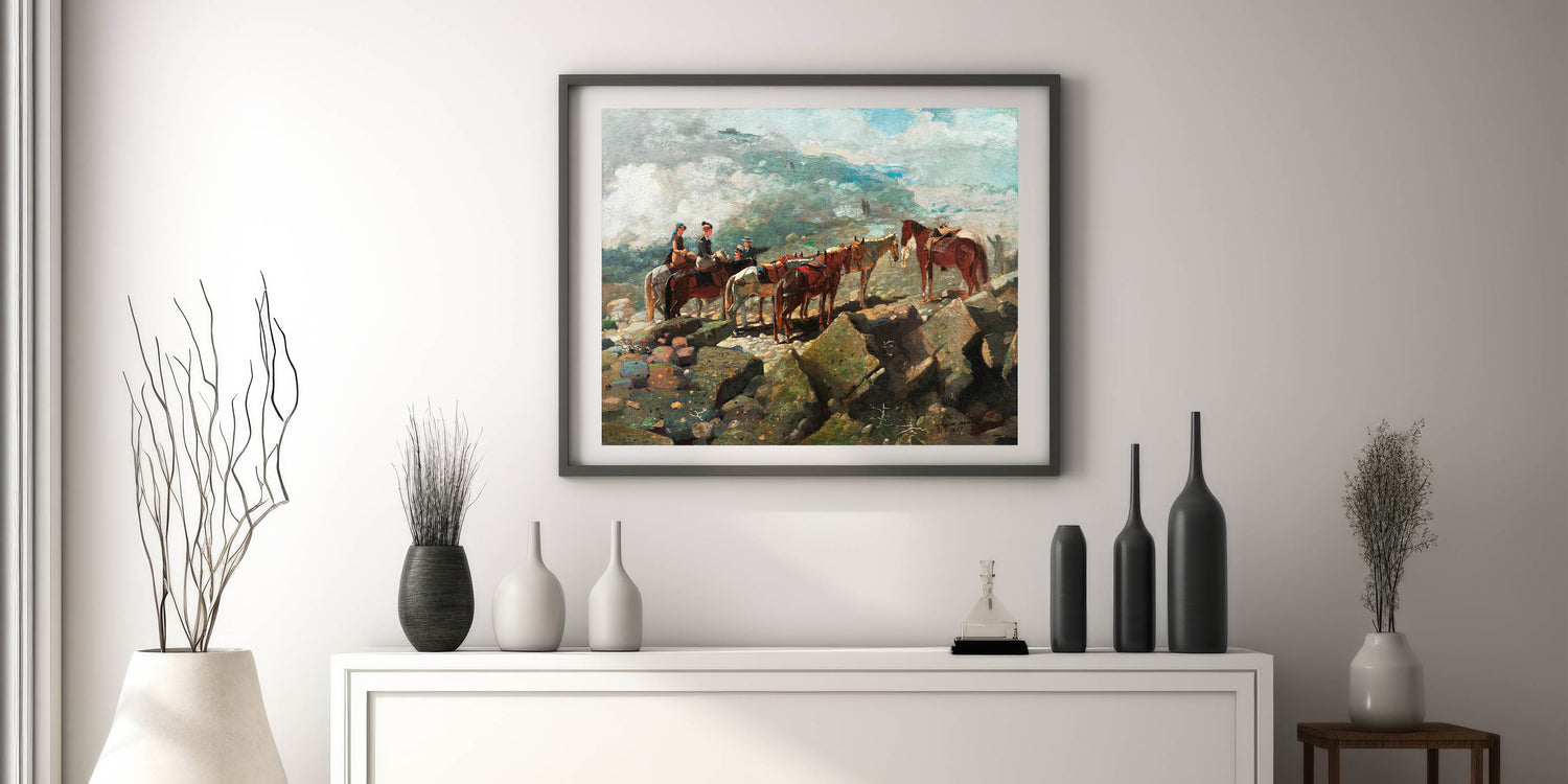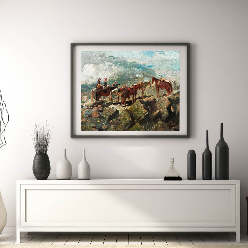 Experience the majesty of nature and adventure with our "Mount Washington" Realism Art Print. Painted by Winslow Homer in 1869, this artwork captures a moment of stillness as riders pause amidst a rugged, mountainous landscape. The composition highlights the beauty and grandeur of the natural world, enhanced by Homer's attention to detail and atmospheric perspective. Ideal for those who appreciate classic landscapes, this piece adds a touch of exploration and history to any space.