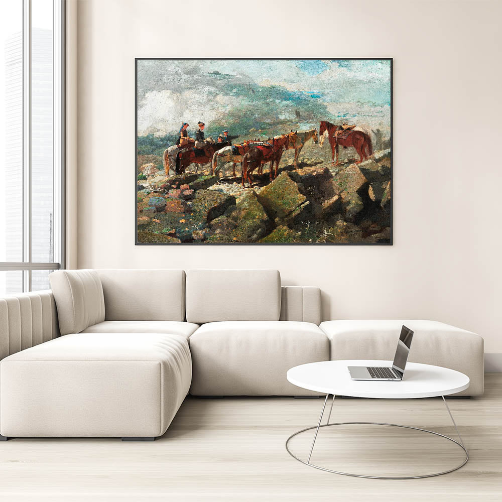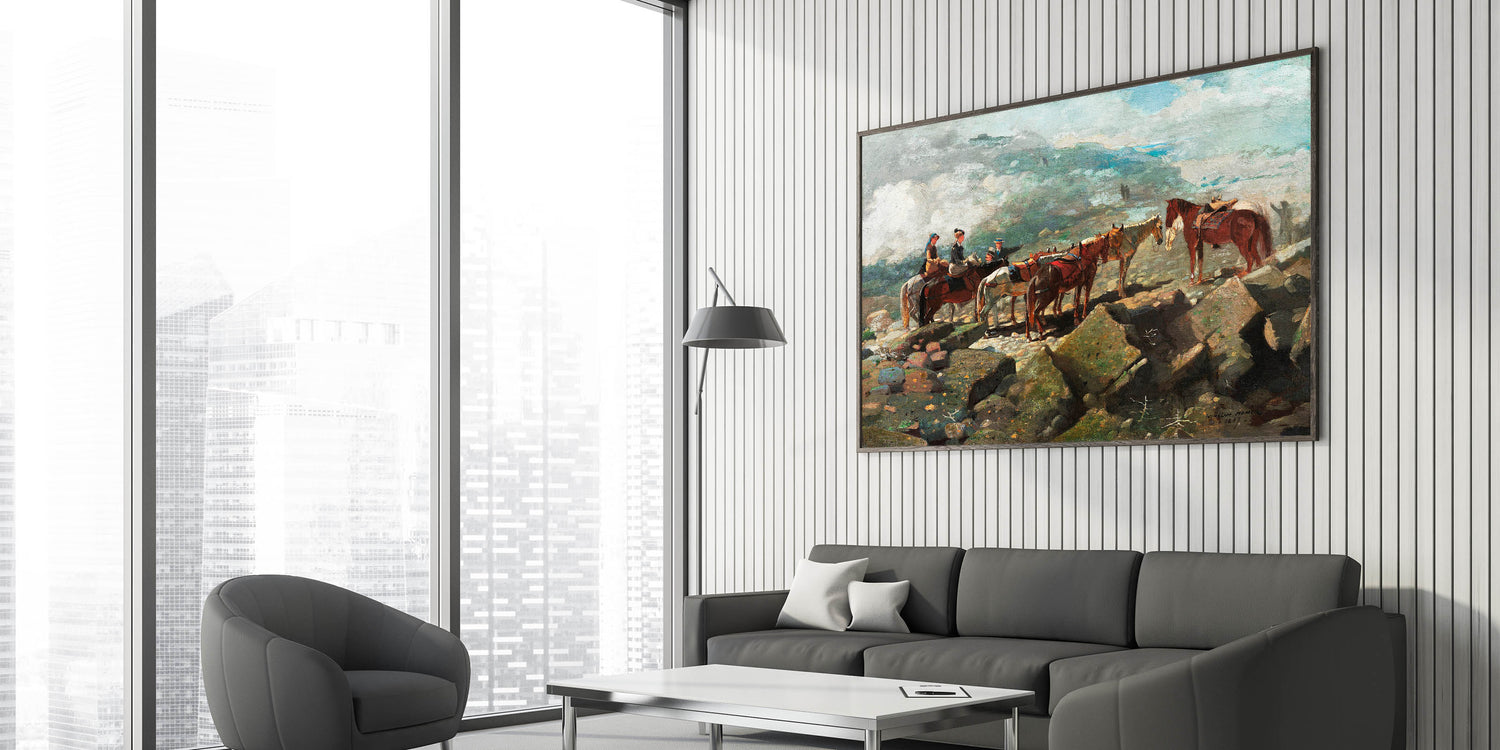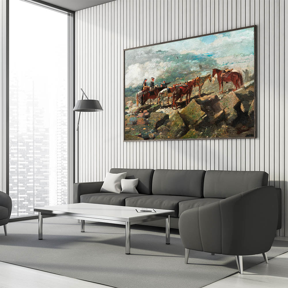 Experience the majesty of nature and adventure with our "Mount Washington" Realism Art Print. Painted by Winslow Homer in 1869, this artwork captures a moment of stillness as riders pause amidst a rugged, mountainous landscape. The composition highlights the beauty and grandeur of the natural world, enhanced by Homer's attention to detail and atmospheric perspective. Ideal for those who appreciate classic landscapes, this piece adds a touch of exploration and history to any space.