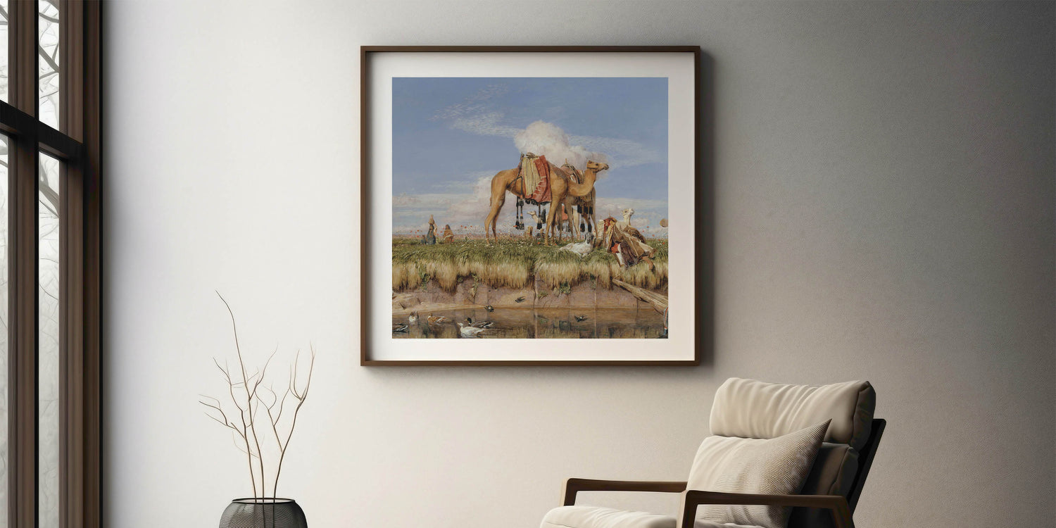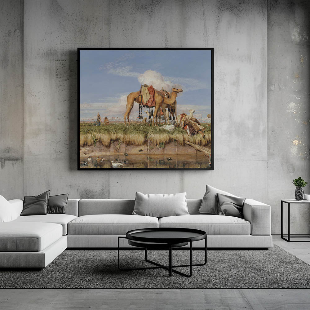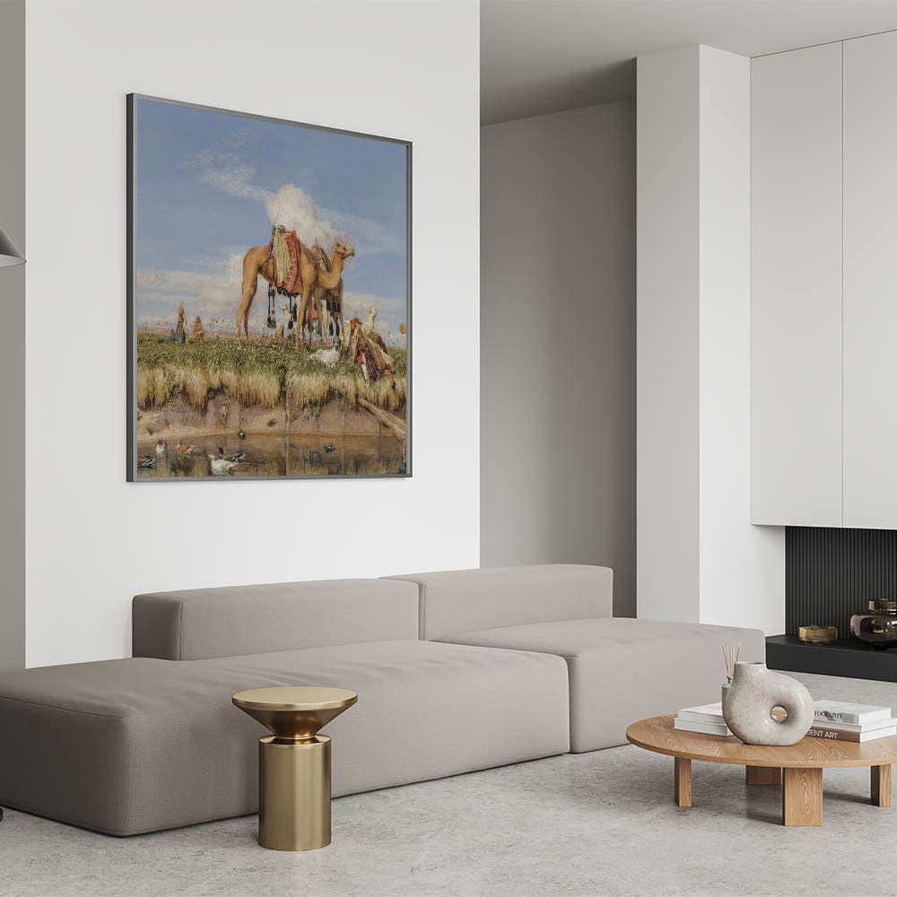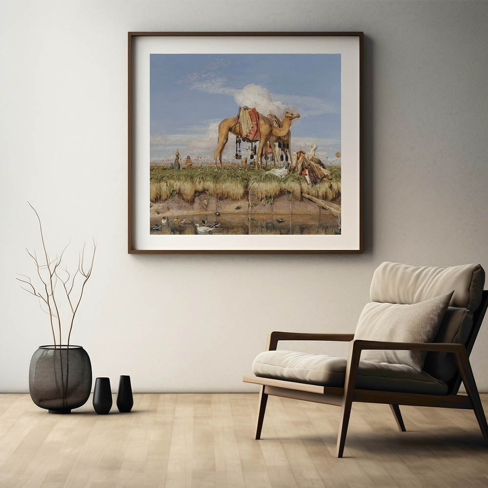 Celebrate the majesty of the Romantic era with this captivating artwork, "On the Banks of the Nile," painted by John Frederick Lewis in 1876. This piece beautifully encapsulates the Romanticism style with its depiction of serene Egyptian landscapes, vibrant details, and a focus on cultural harmony. The intricate portrayal of camels, travelers, and wildlife near the Nile creates a timeless connection to history and nature.