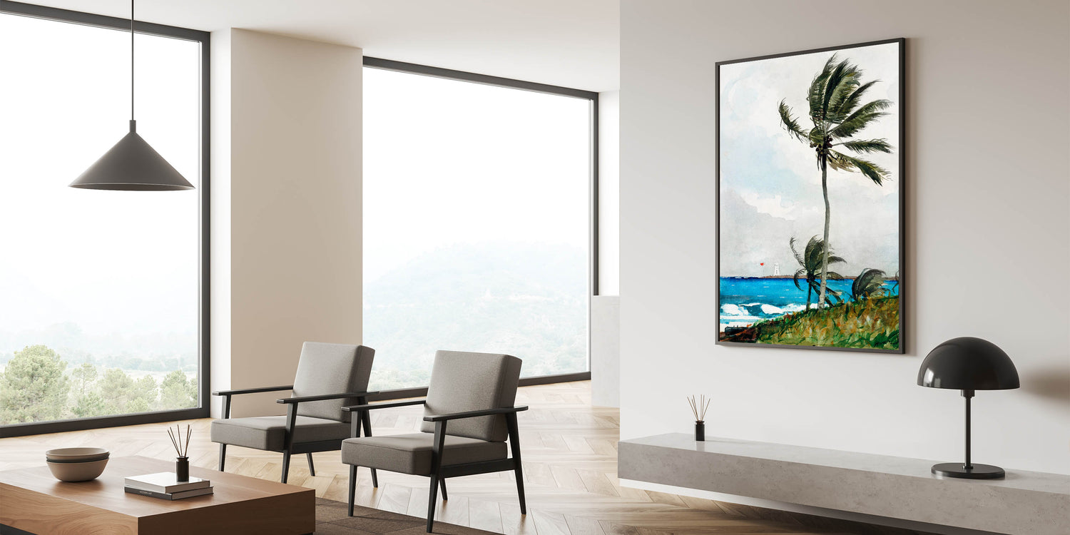 Bring the refreshing essence of the tropics into your home with "Palm Tree, Nassau" Realism Art Print by Winslow Homer. Created in 1898, this piece captures the serene beauty of a tropical coastline, complete with tall, swaying palm trees and the gentle waves of the sea. Homer’s masterful watercolor work evokes a sense of calm and escapism, transporting viewers to a coastal paradise. Ideal for those who love beach scenes and tropical decor, this artwork adds a breezy, relaxing ambiance to any space.