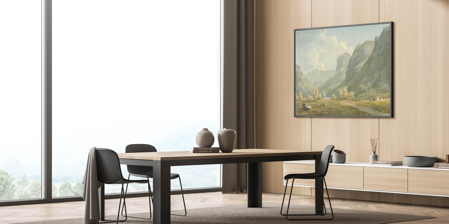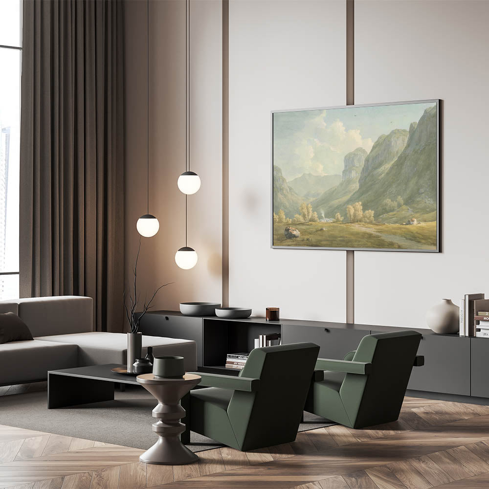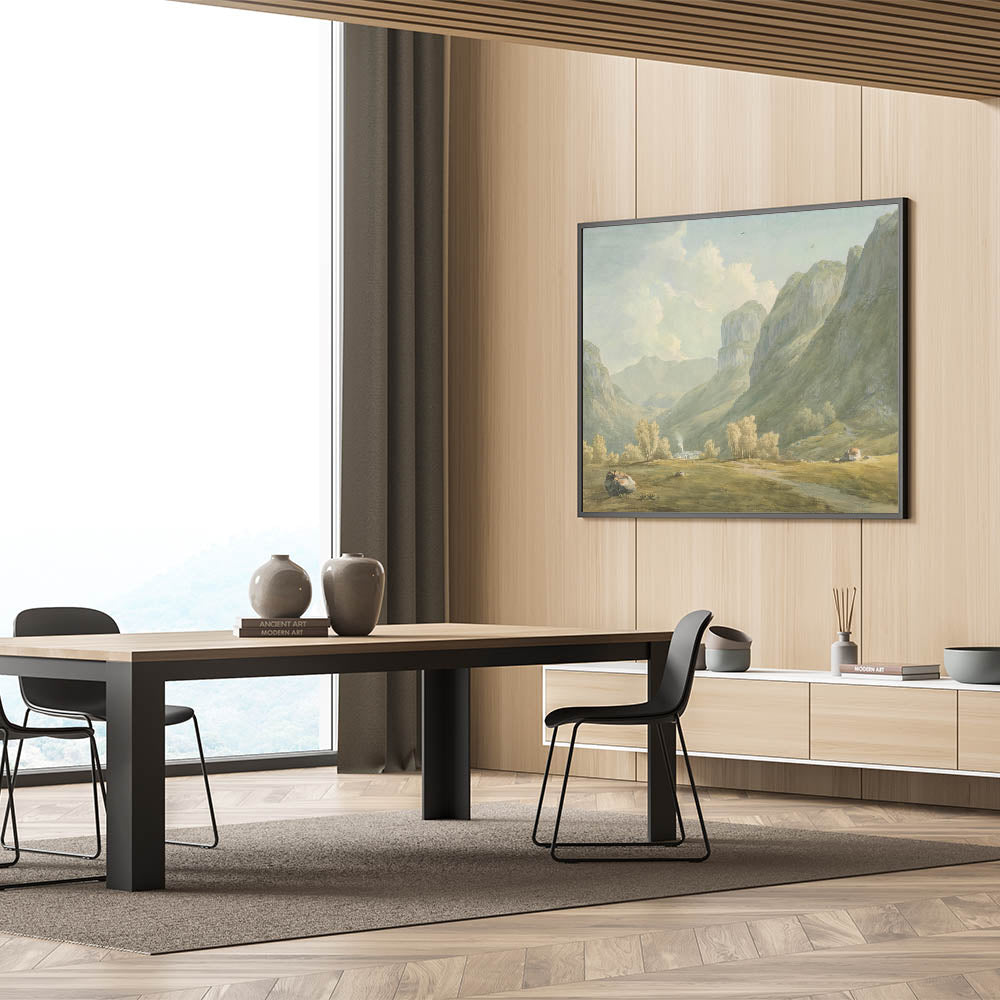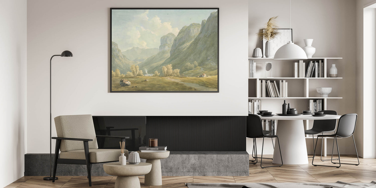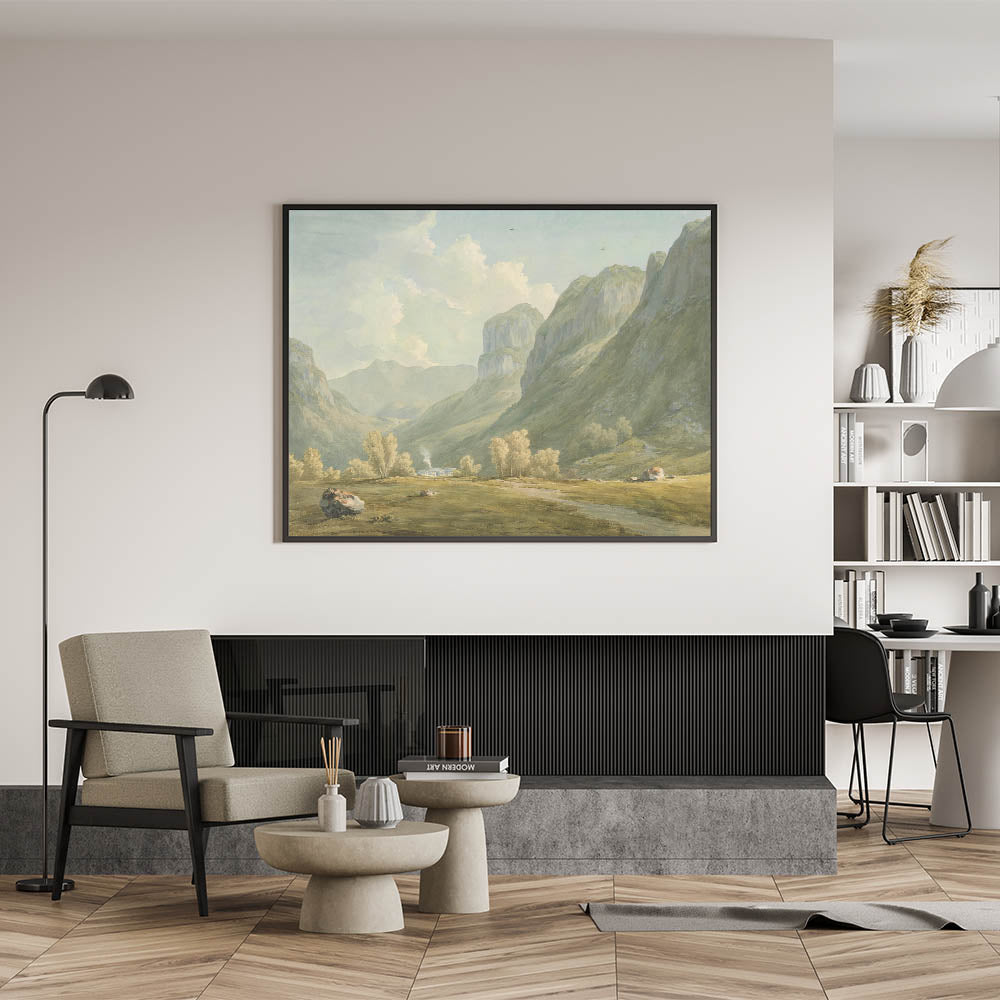 Immerse yourself in the tranquility of the Village of Stonethwaite and Eagle Cragg, Borrowdale, through this exquisite Realism art print. Capturing the serene beauty of a quaint village embraced by lush mountains, this artwork brings a breath of fresh air and the essence of nature into your living space. Its soft, pastel tones and the calmness of the landscape make it an ideal choice for those looking to add a peaceful element to their home decor.