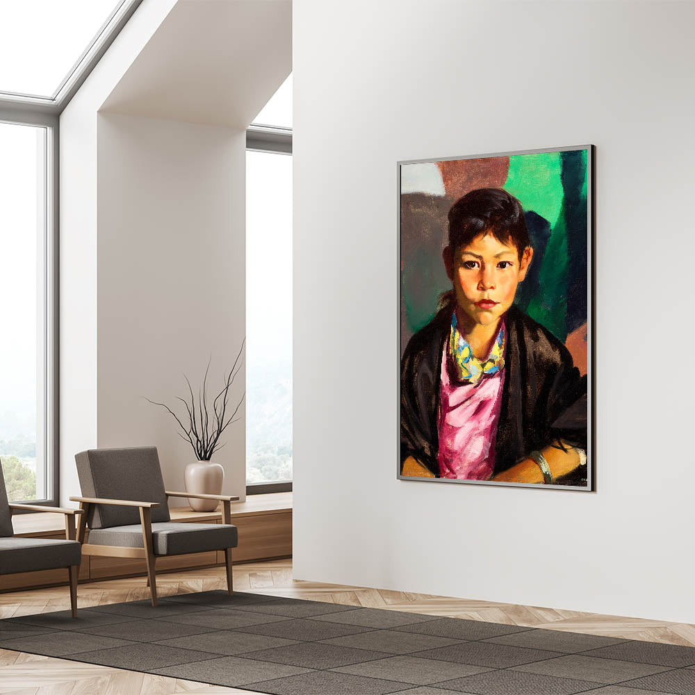 Bring the vivid character and warmth of portrait art into your space with our "Pepita" Realism Art Print. This captivating piece by artist Robert Henri highlights a young girl's expressive gaze and rich, detailed surroundings. Painted in a classical realism style, the portrait draws viewers into the intricate details of her face and attire, framed by a striking color palette that exudes life and emotion. Perfect for adding depth and sophistication to any room, this artwork is ideal for those who appreciate finely detailed realism.