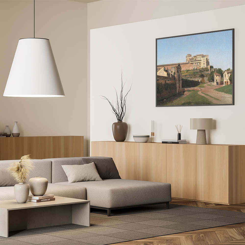 Step back into the charm of 19th-century Romanticism with Porta Angelica and Part of the Vatican, a breathtaking landscape by C.W. Eckersberg. This artwork captures a serene scene of architectural elegance and natural harmony, with the Vatican's majestic structures framed by a tranquil countryside. The soft interplay of light and shadow highlights the beauty of the era’s artistic focus on cultural and historic themes.
