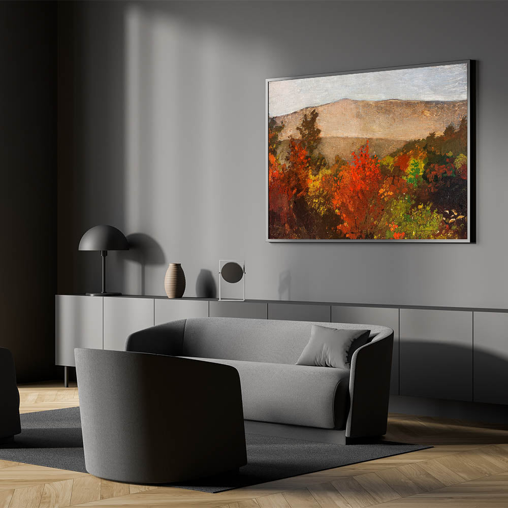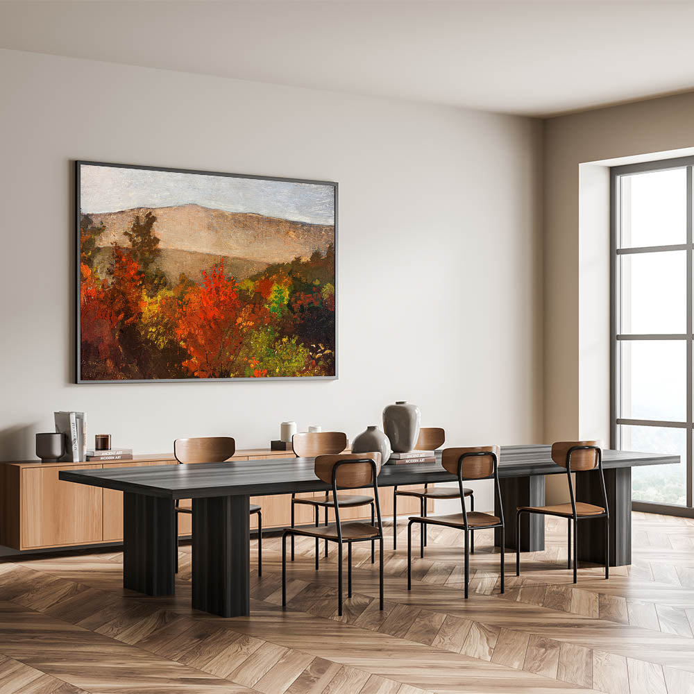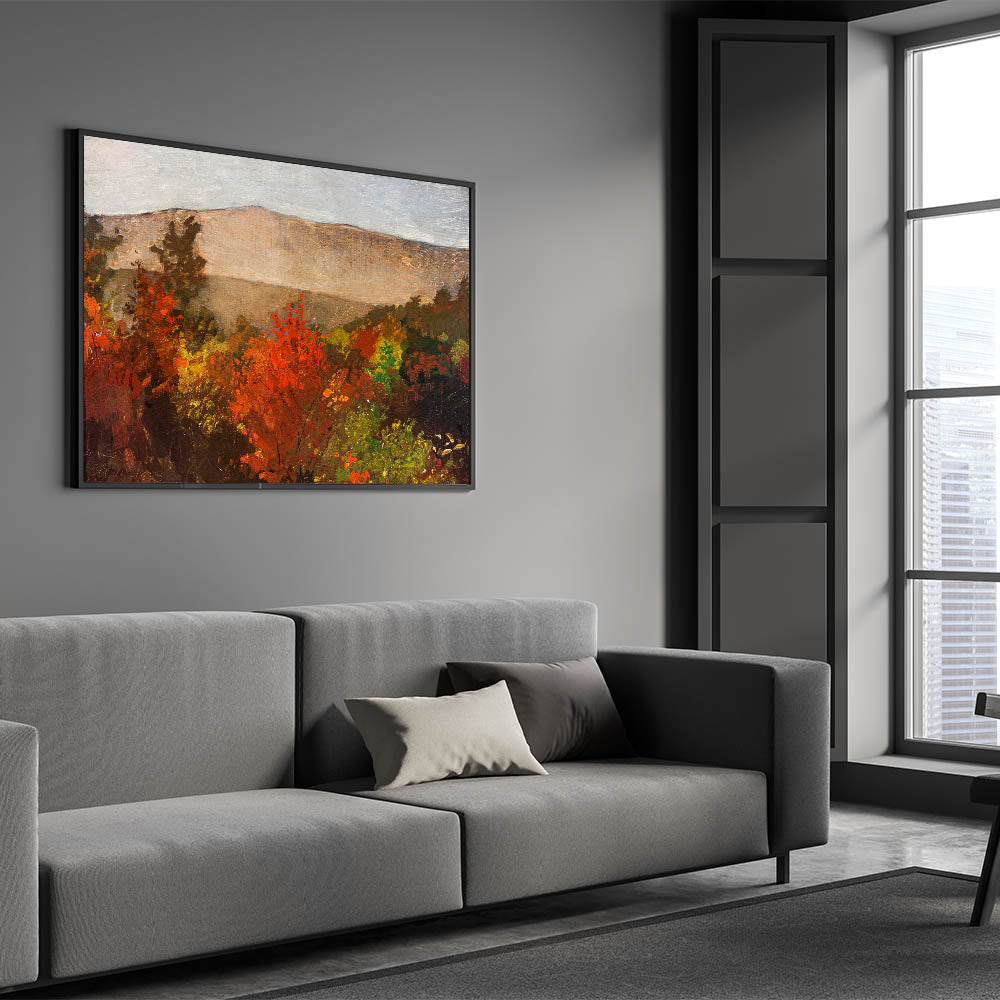 Experience the vivid beauty of autumn with "Autumn Treetops" by Winslow Homer, a striking addition to our Realism Art Prints collection. This artwork captures a breathtaking view of fall foliage with trees ablaze in shades of red, orange, and yellow, set against a serene landscape. Perfect for bringing the warmth and richness of autumn indoors, this piece is ideal for those who love nature’s vibrant transformations.