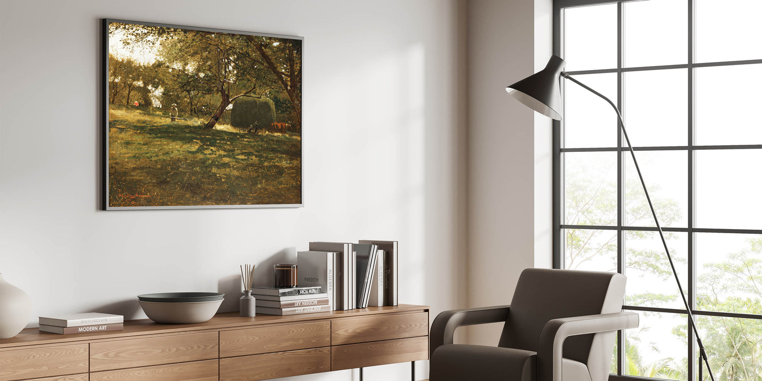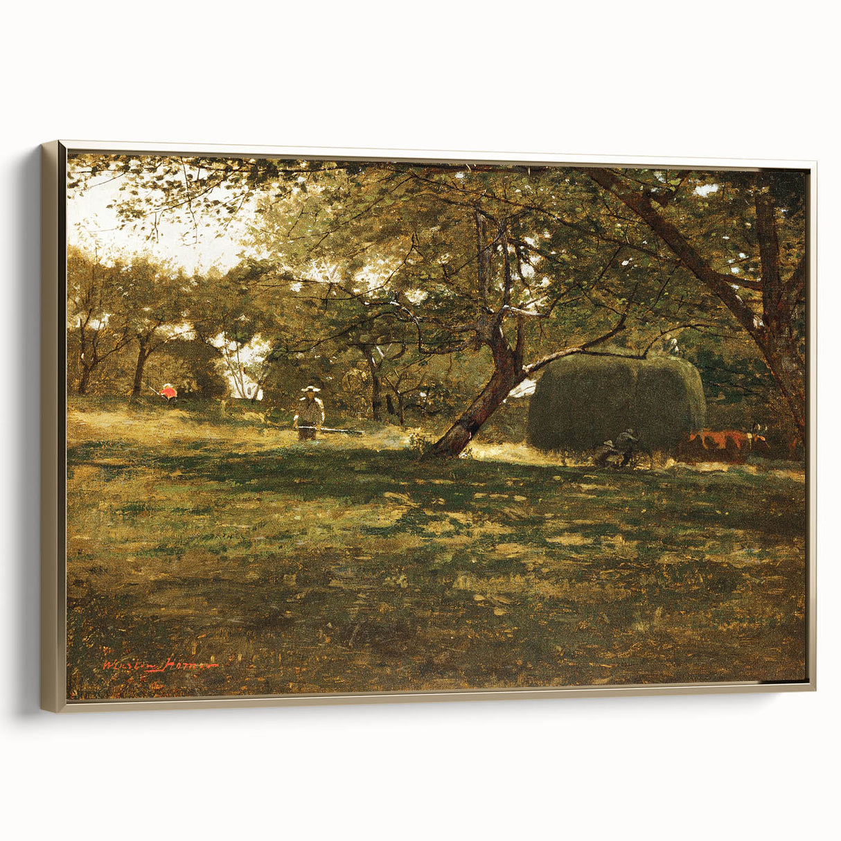Bring the tranquility of the countryside into your home with "Harvest Scene" by Winslow Homer, a captivating piece from our Classical Realism Paintings collection. This artwork beautifully captures a sun-dappled field where farmers work in harmony with nature, surrounded by trees and open skies. The rich earthy tones and peaceful rural landscape make this piece a perfect addition to spaces that celebrate nature and classic realism.