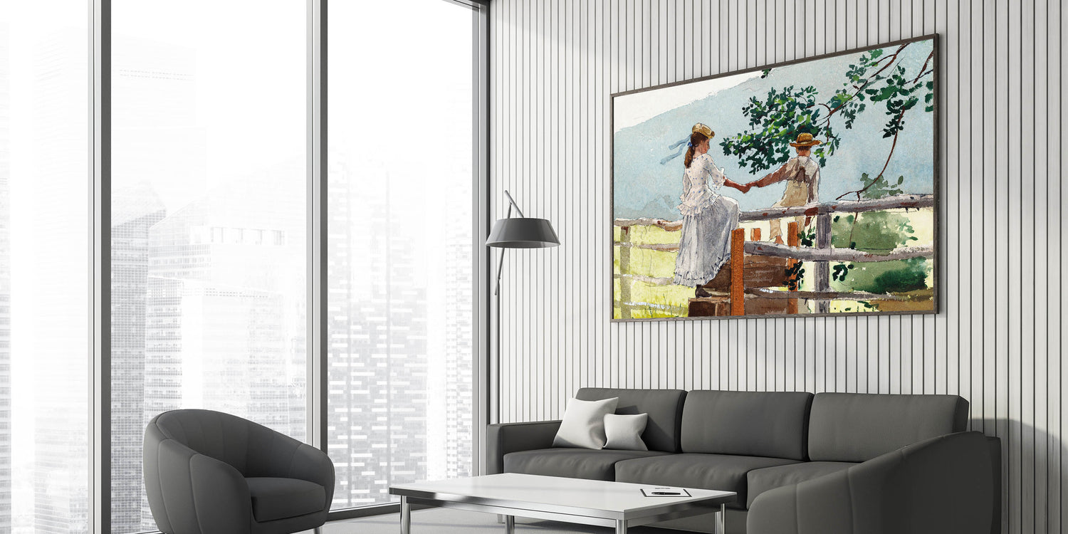 Realism Art Prints - Nostalgic Countryside Scene with Children on Canvas