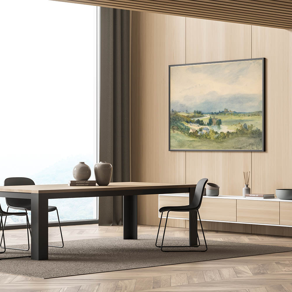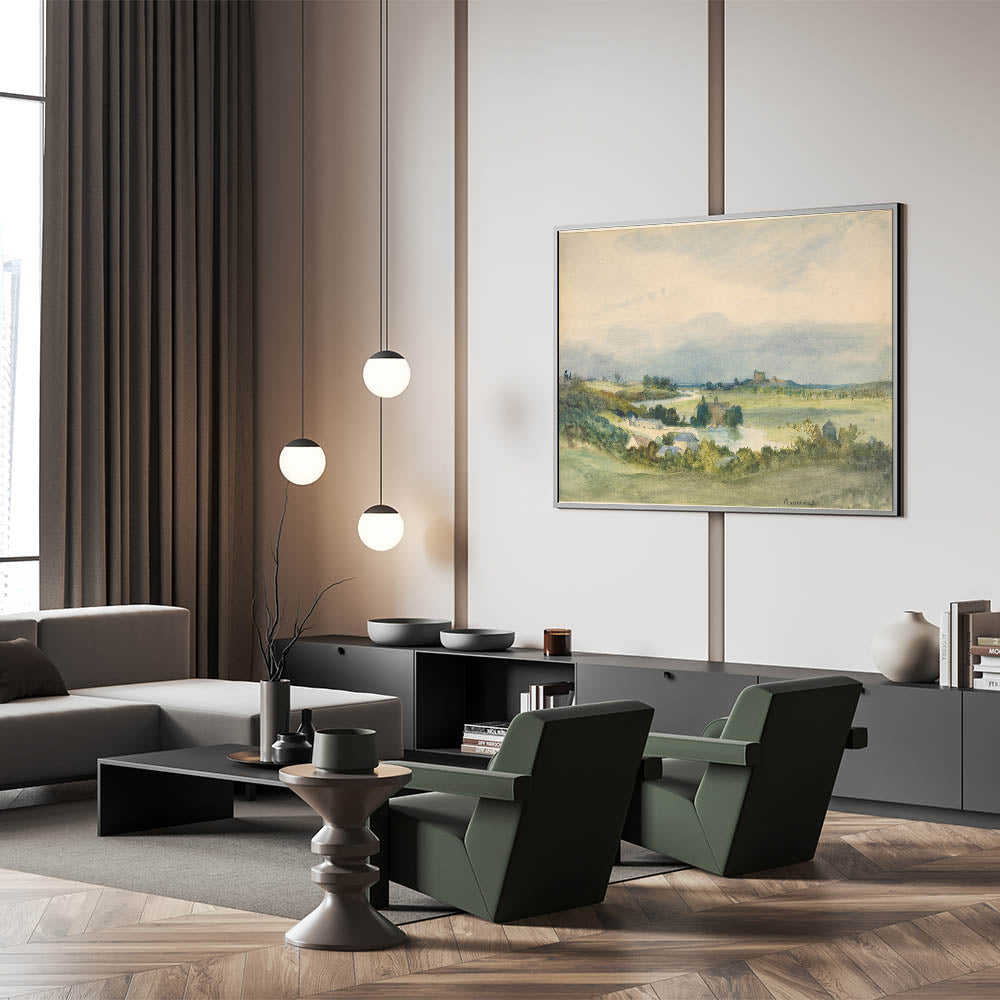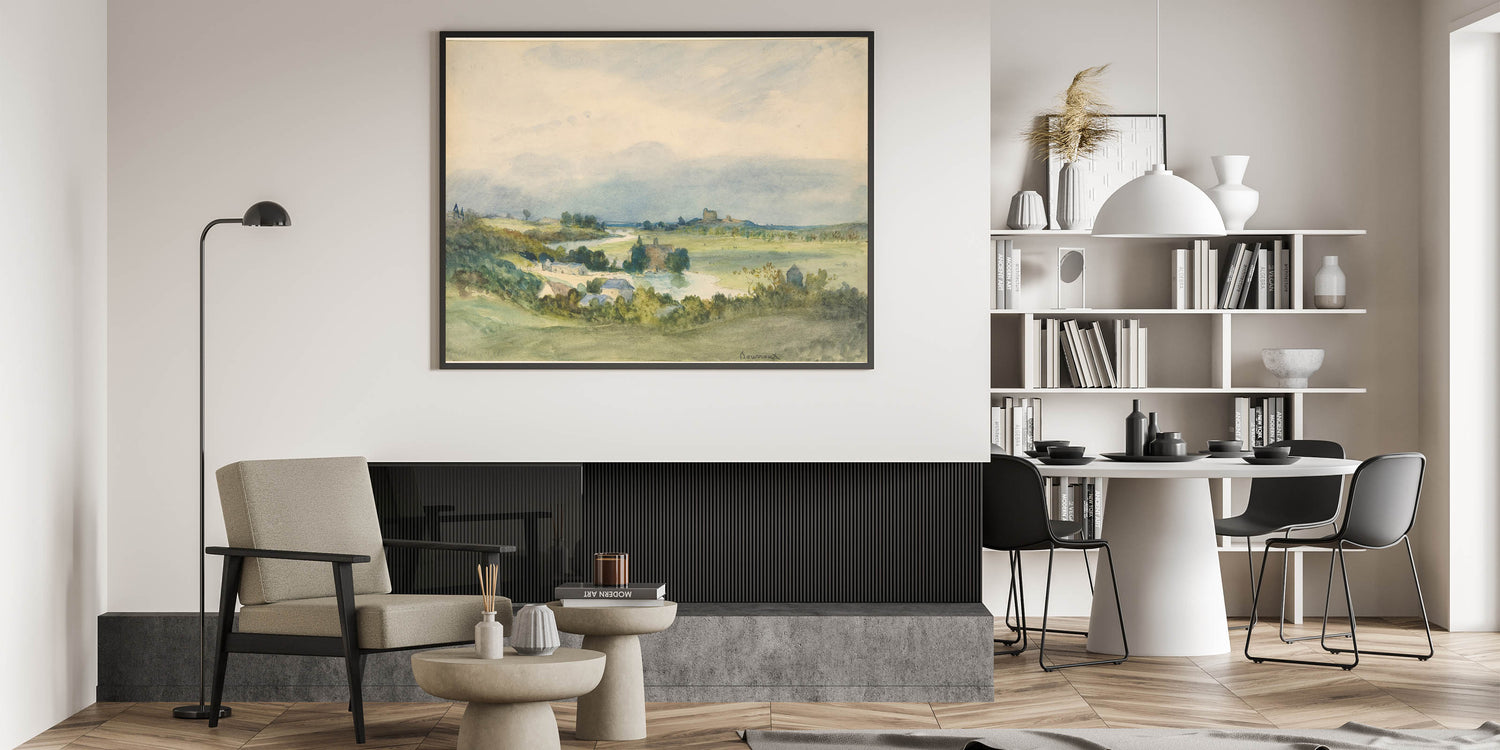 Experience the charm of Romanticism with Antoine Chintreuil's exquisite "Extensive Landscape with Fortified Hill." This timeless artwork features a picturesque countryside, soft pastel hues, and the historical allure of a fortified building in the distance. Perfectly capturing the Romantic era's focus on emotional landscapes and tranquil settings, this piece is ideal for historic and cultural wall decor.