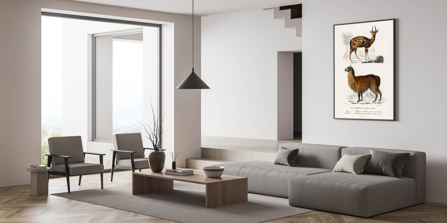 Bring the charm of the Romanticism style wall art into your home with this meticulously detailed illustration of an alpaca (Vicugna Pacos) and antelope by Charles Dessalines D'Orbigny. This artwork embodies the essence of the classic art of the Romantic era, combining emotional expression with nature's majesty. Perfect for anyone who appreciates wildlife art and historical artistry.
