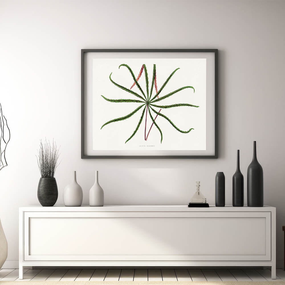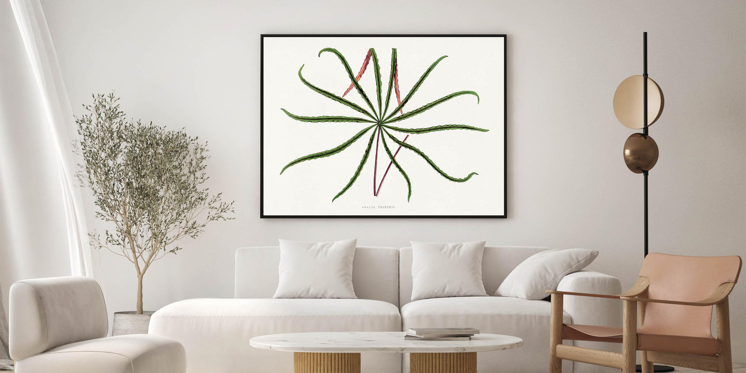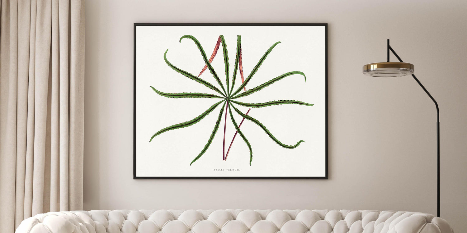 Infuse your home with the sophistication of the Romantic era through this exquisite botanical artwork. "Aralia Veitchii Leaf" is a timeless representation of nature's artistry, making it a perfect addition for collectors and nature enthusiasts alike.