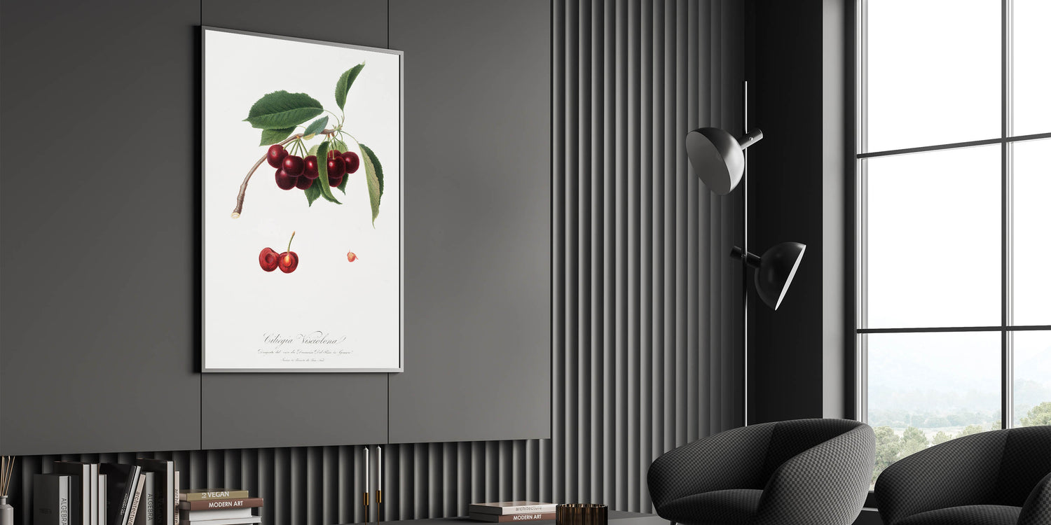 Celebrate the beauty of nature with Cherry (Cerasus Visciola), a detailed botanical illustration from Giorgio Gallesio’s Pomona Italiana (1817–1839). This exquisite artwork showcases ripe, deep-red cherries hanging delicately from a branch with vibrant green leaves. The Romantic era’s dedication to scientific precision and artistic expression shines through in this piece, blending natural beauty with timeless elegance.