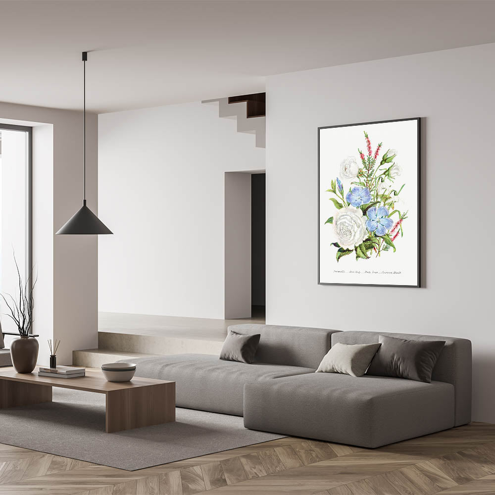 This stunning piece of Romantic art for home décor is ideal for nature enthusiasts, art lovers, and those who appreciate the timeless elegance of floral art. Add a touch of serenity and sophistication to your space with this exquisite bouquet illustration.