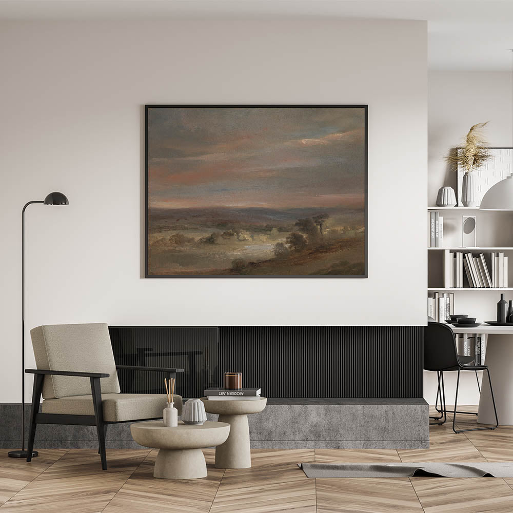Experience the gentle tranquility of A View on Hampstead Heath, Early Morning, a serene Romanticism artwork by John Constable. This masterpiece captures the soft hues of dawn over Hampstead Heath, with a delicate interplay of muted greens, soft browns, and pastel pinks. The atmospheric brushstrokes evoke the calmness and quietude of an early morning landscape, reflecting the Romantic era's deep connection to nature's beauty and simplicity.