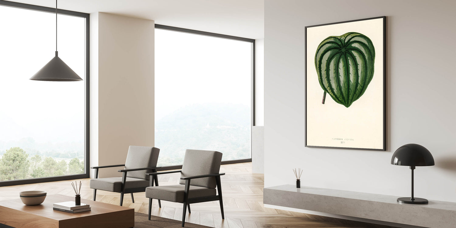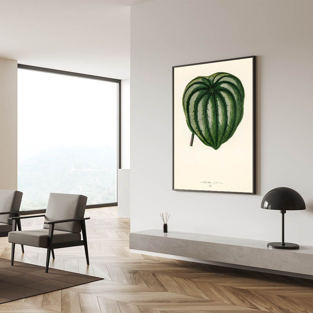 Bring the elegance of the Romanticism era to your home with this exquisite depiction of the Peperomia Argypeia, or Pepper Elder. Capturing the intricate beauty of nature, this artwork is a testament to the Romanticism style, emphasizing emotional connection and the splendor of natural forms. Perfect for those seeking a blend of history and nature in their decor.