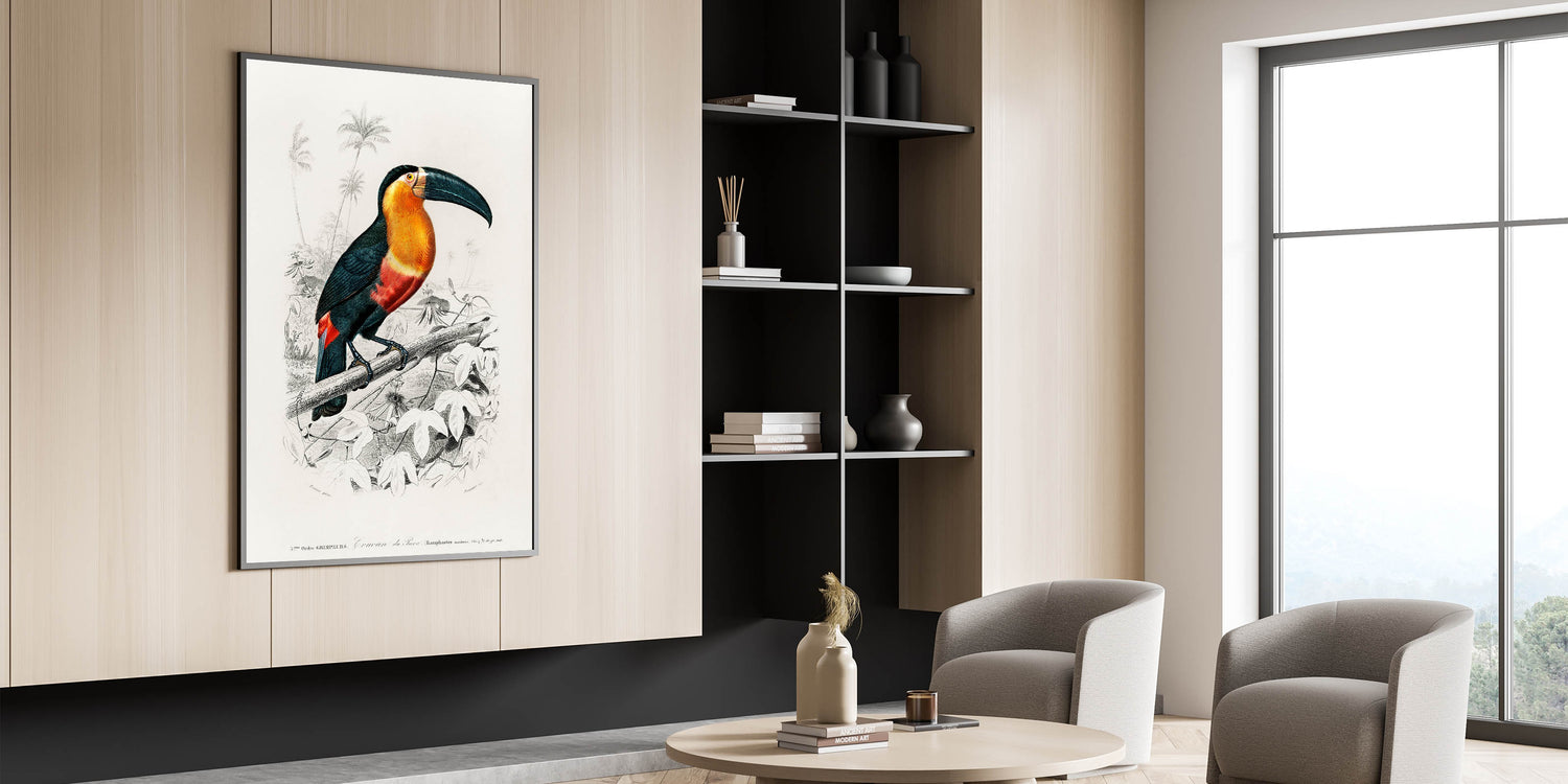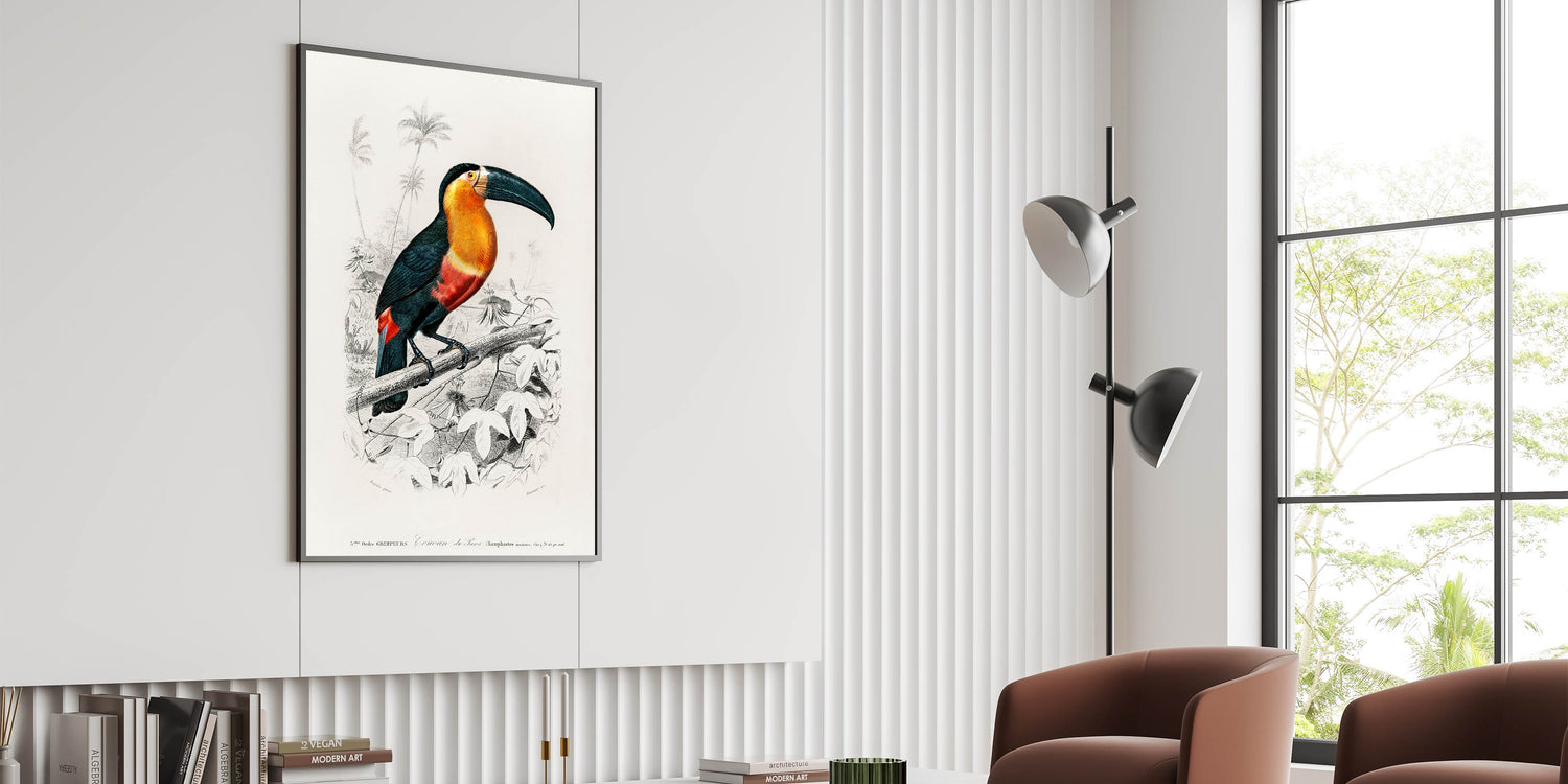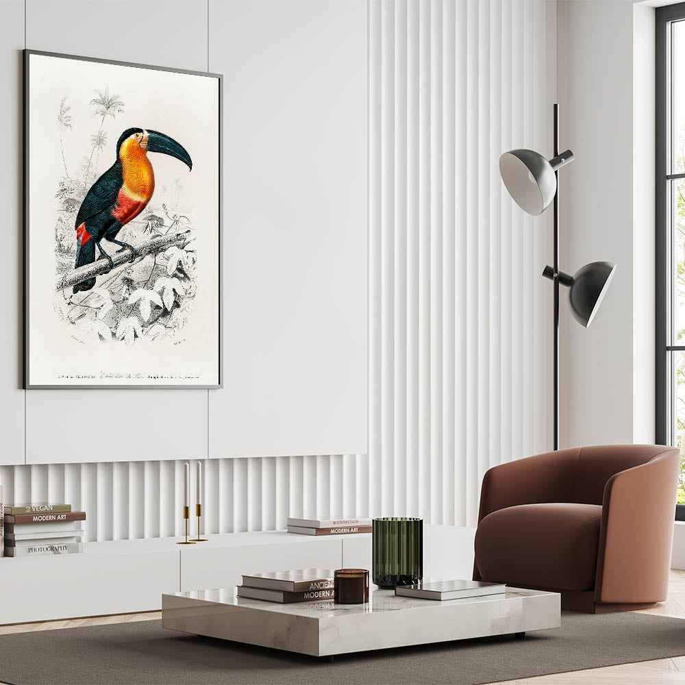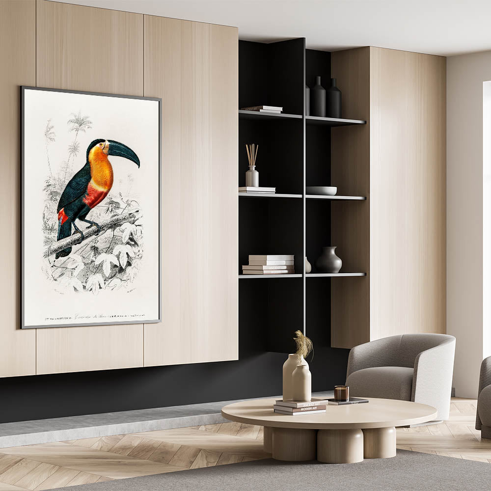 Add an air of timeless elegance to your home with this exquisite piece of Romanticism art, showcasing the intricate illustration of a toucan by Charles Dessalines D'Orbigny. This historical Romanticism canvas captures the essence of the Romantic era, emphasizing the beauty of nature and the delicate artistry of detailed wildlife portraits.