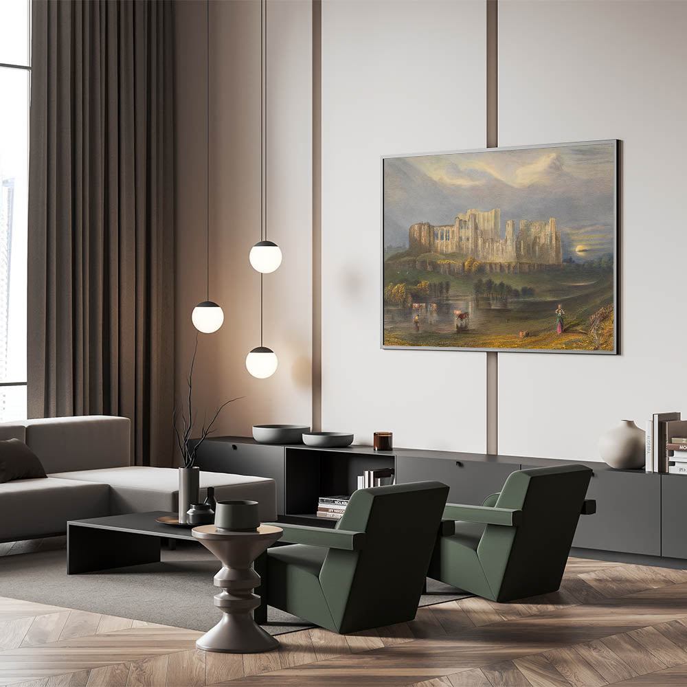 Step back in time with this breathtaking depiction of Kenilworth Castle, a perfect example of Romanticism-style wall art. This artwork captures the serene beauty of the castle ruins, surrounded by tranquil waters and pastoral scenes. The soft light and atmospheric mood evoke the emotional depth and historic significance of the Romantic era.