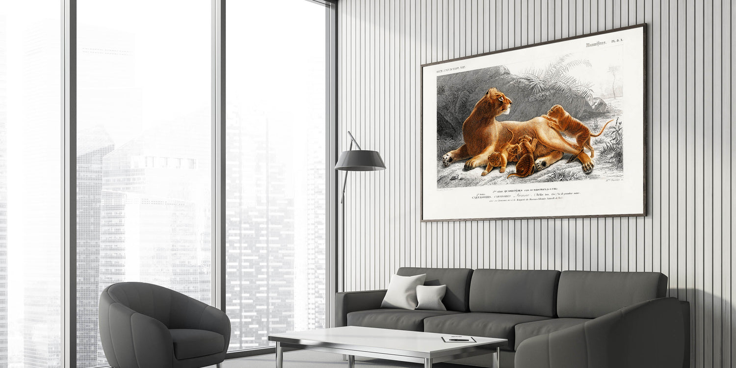 Romanticism Art: Lioness with Cubs by D’Orbigny - Wildlife Canvas