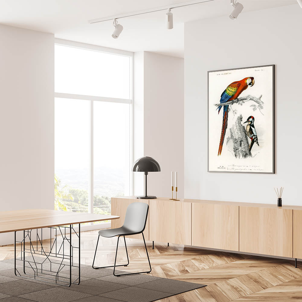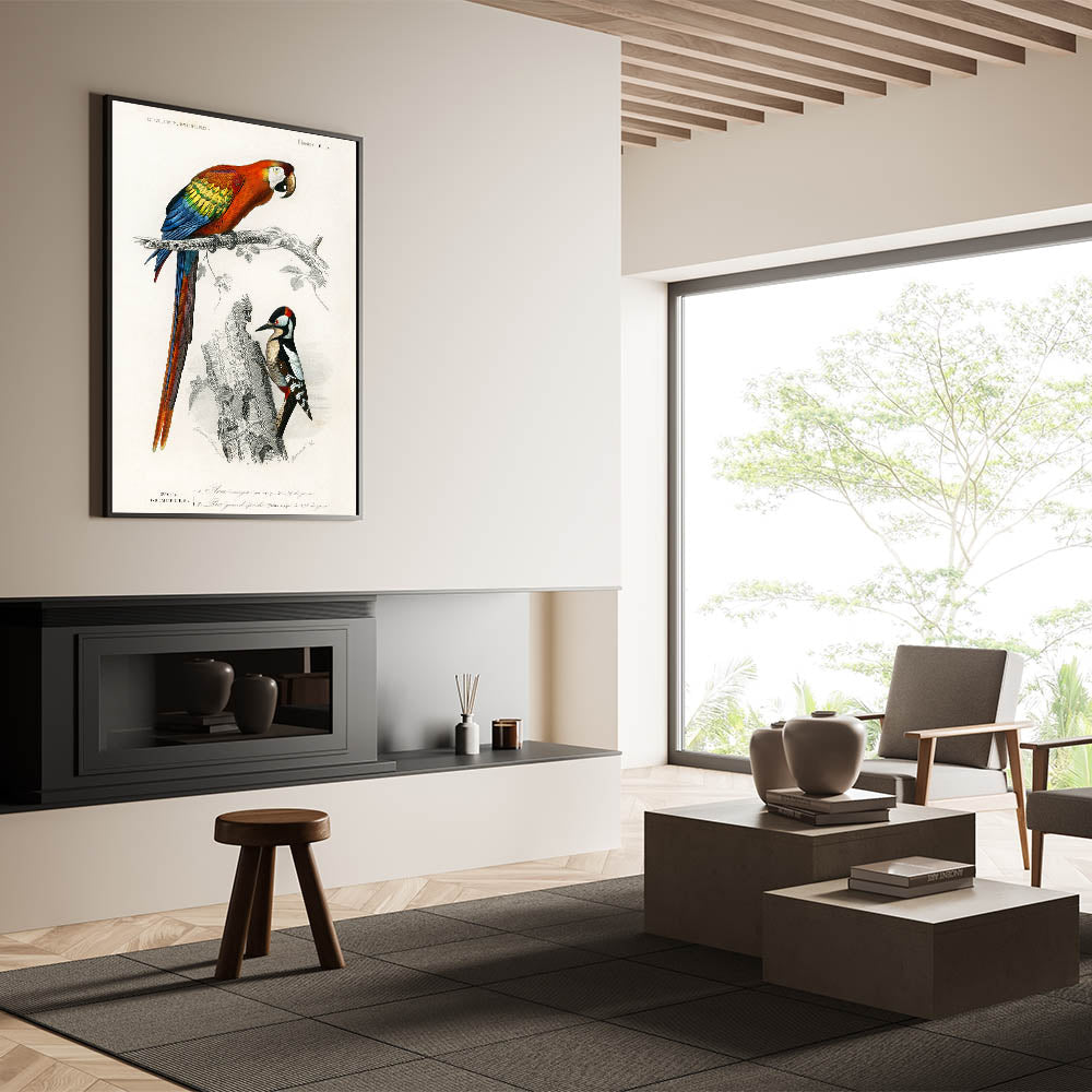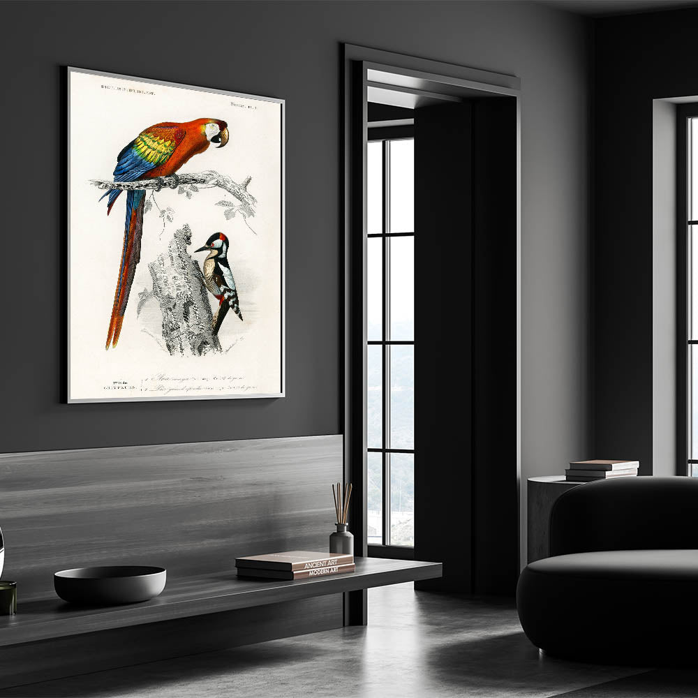 Add a vibrant touch of nature to your décor with this stunning Romanticism style wall art, showcasing a colorful macaw and an elegant woodpecker, masterfully illustrated by Charles Dessalines D’Orbigny. This artwork embodies the beauty and precision of the classic art of the Romantic era, celebrating the diversity of bird species and their natural elegance. The macaw’s vivid plumage and the woodpecker’s intricate patterns create a striking visual contrast, making this piece a captivating centerpiece for any room.