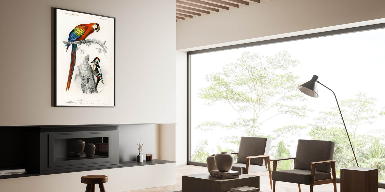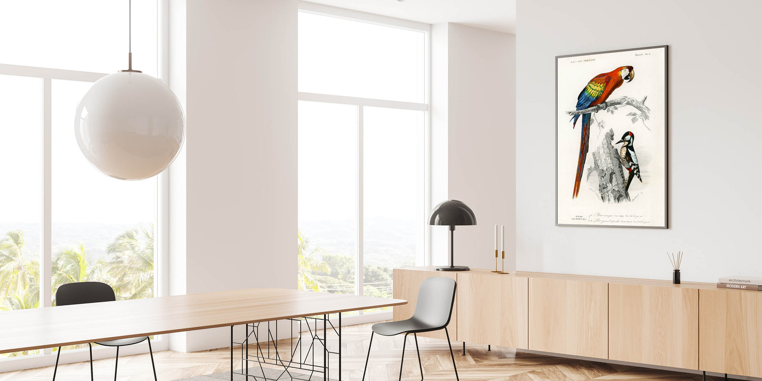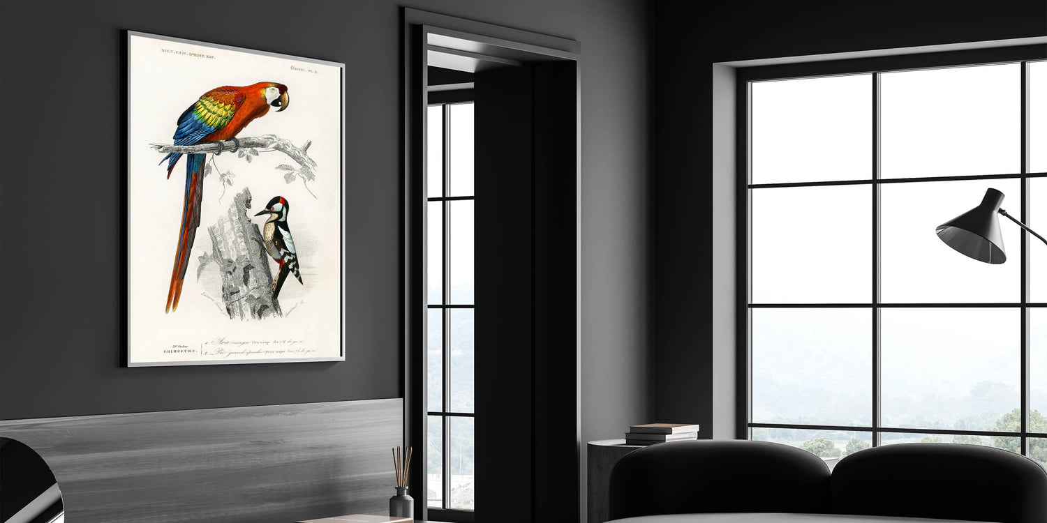 Add a vibrant touch of nature to your décor with this stunning Romanticism style wall art, showcasing a colorful macaw and an elegant woodpecker, masterfully illustrated by Charles Dessalines D’Orbigny. This artwork embodies the beauty and precision of the classic art of the Romantic era, celebrating the diversity of bird species and their natural elegance. The macaw’s vivid plumage and the woodpecker’s intricate patterns create a striking visual contrast, making this piece a captivating centerpiece for any room.
