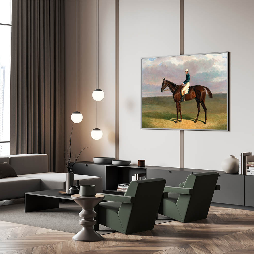 Celebrate the timeless elegance of equestrian art with Margrave with James Robinson Up (1833) by John Frederick Herring. This striking painting captures the regal posture of the racehorse Margrave and his jockey set against an expansive landscape. Herring’s masterful attention to detail showcases the horse’s strength and grace, making this piece a quintessential example of Romantic-era equestrian art.