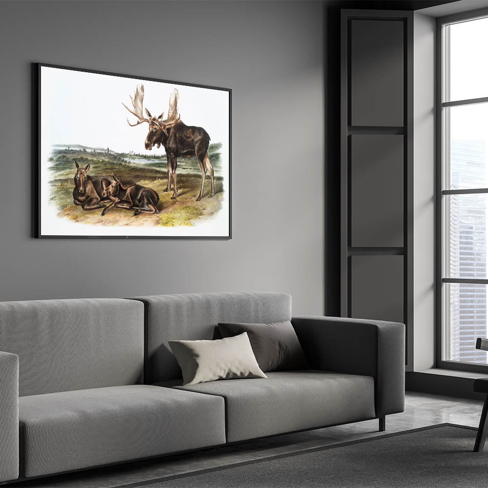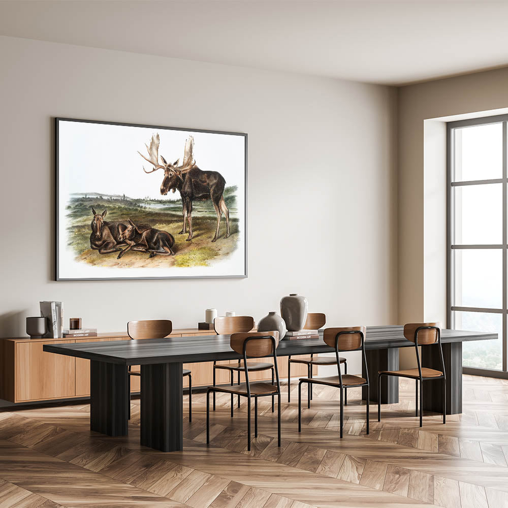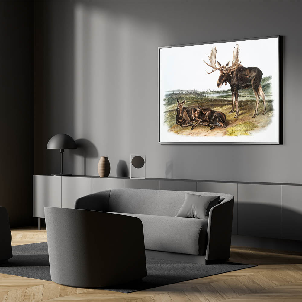 This Romanticism-style wall art is ideal for those who appreciate the beauty of wildlife and history. Whether displayed in a home, office, or gallery, "Moose Deer" captures the timeless elegance of North America's wilderness, providing a connection to the natural world.