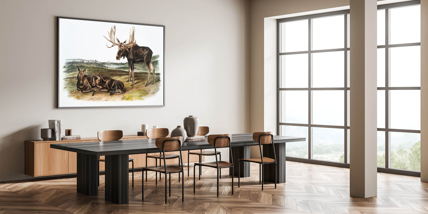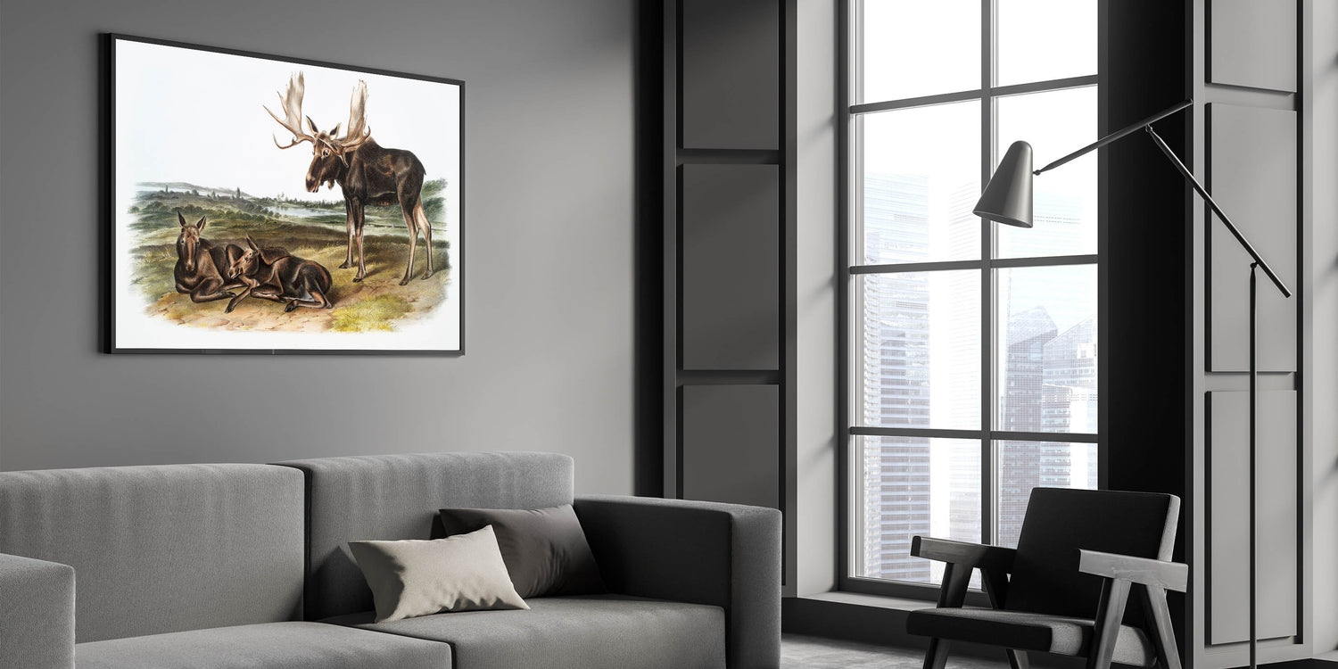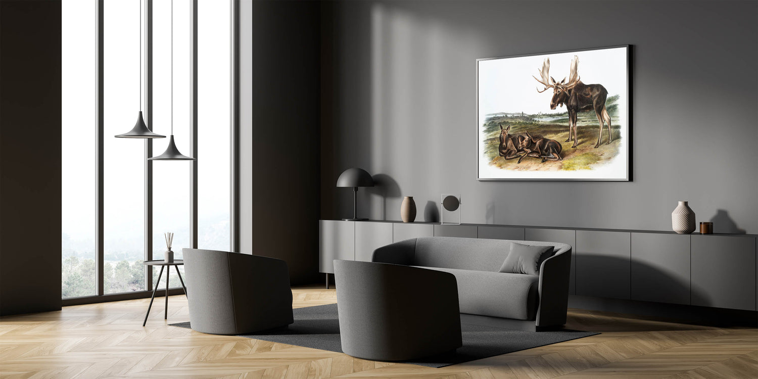 This Romanticism-style wall art is ideal for those who appreciate the beauty of wildlife and history. Whether displayed in a home, office, or gallery, "Moose Deer" captures the timeless elegance of North America's wilderness, providing a connection to the natural world.