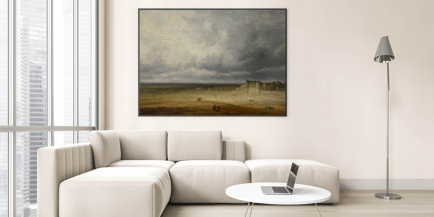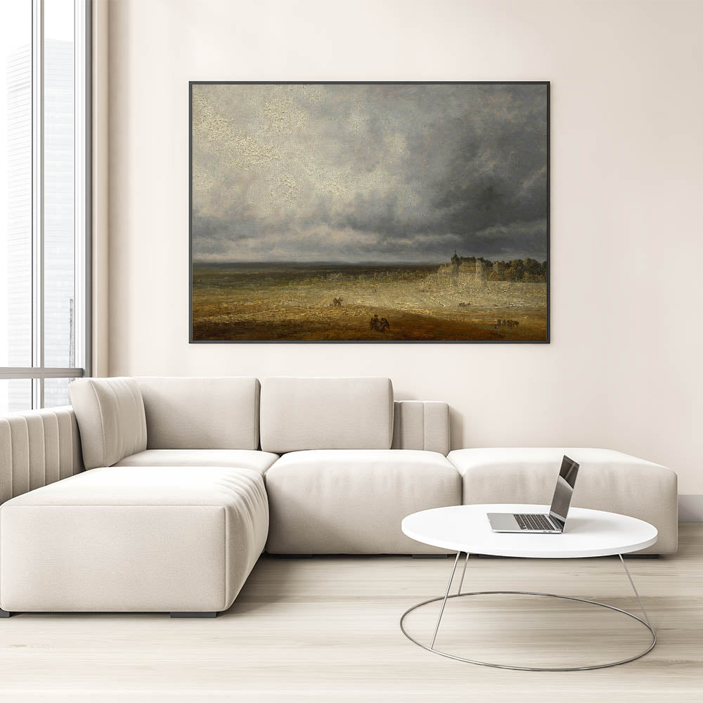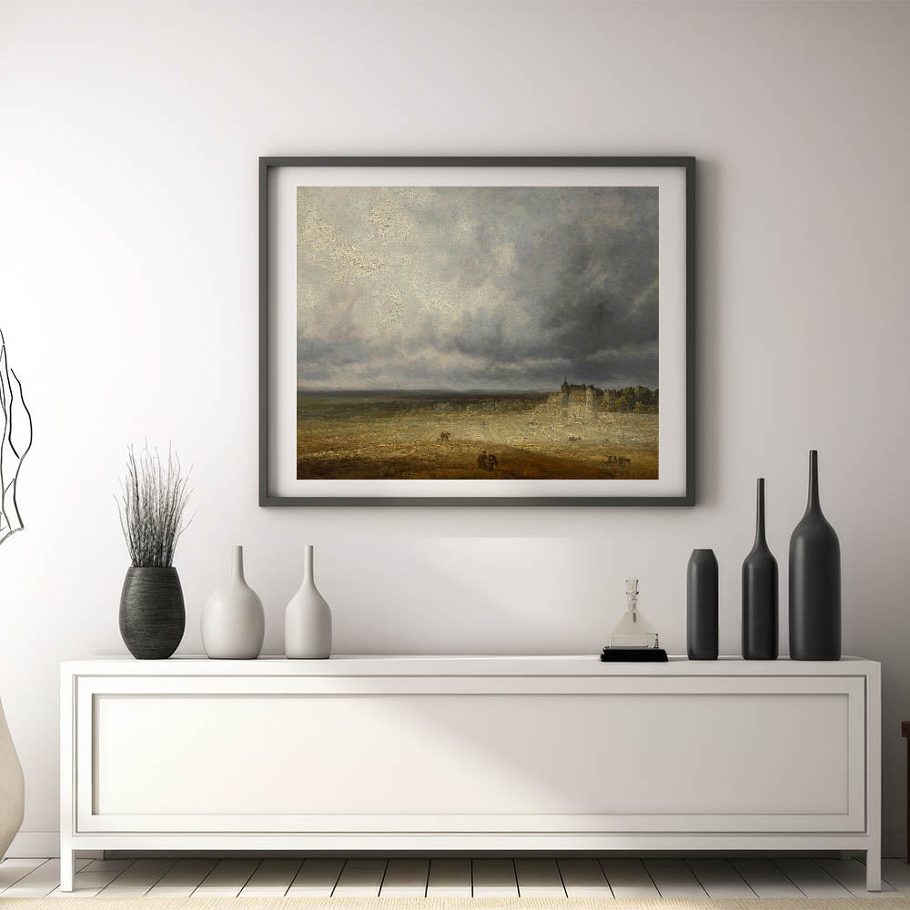 This Romanticism-style wall art perfectly encapsulates the relationship between humanity and the vastness of nature. Whether as a focal point or part of a curated collection, "Landscape with a Plowed Field and a Village" provides a timeless addition to any decor.