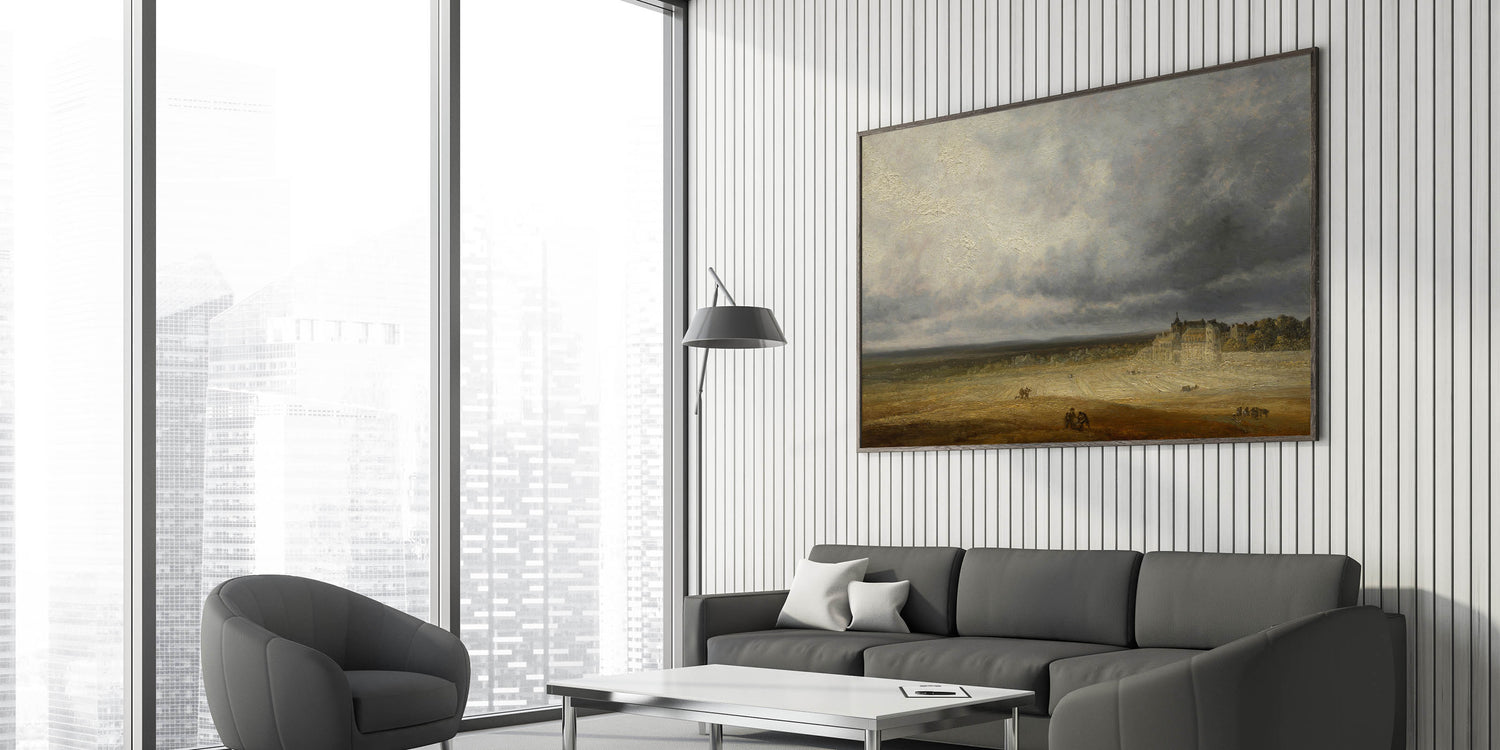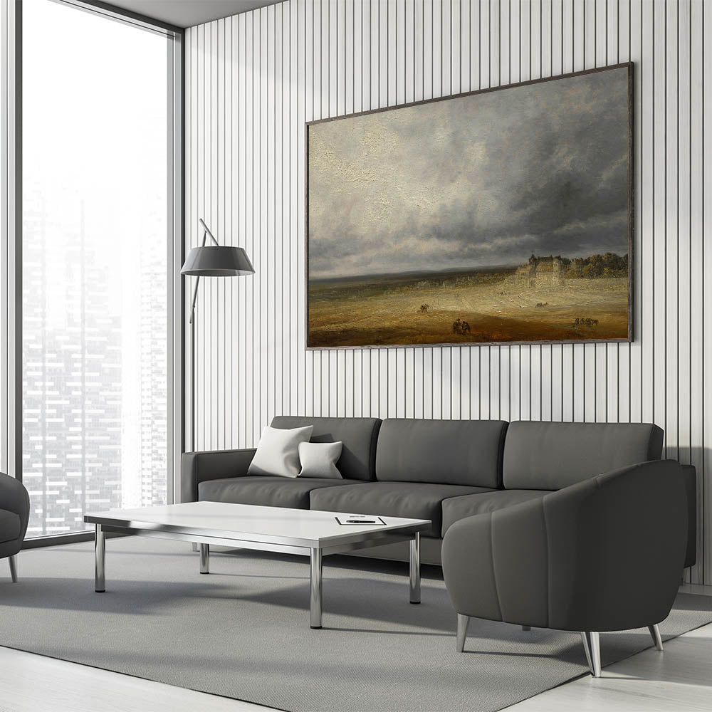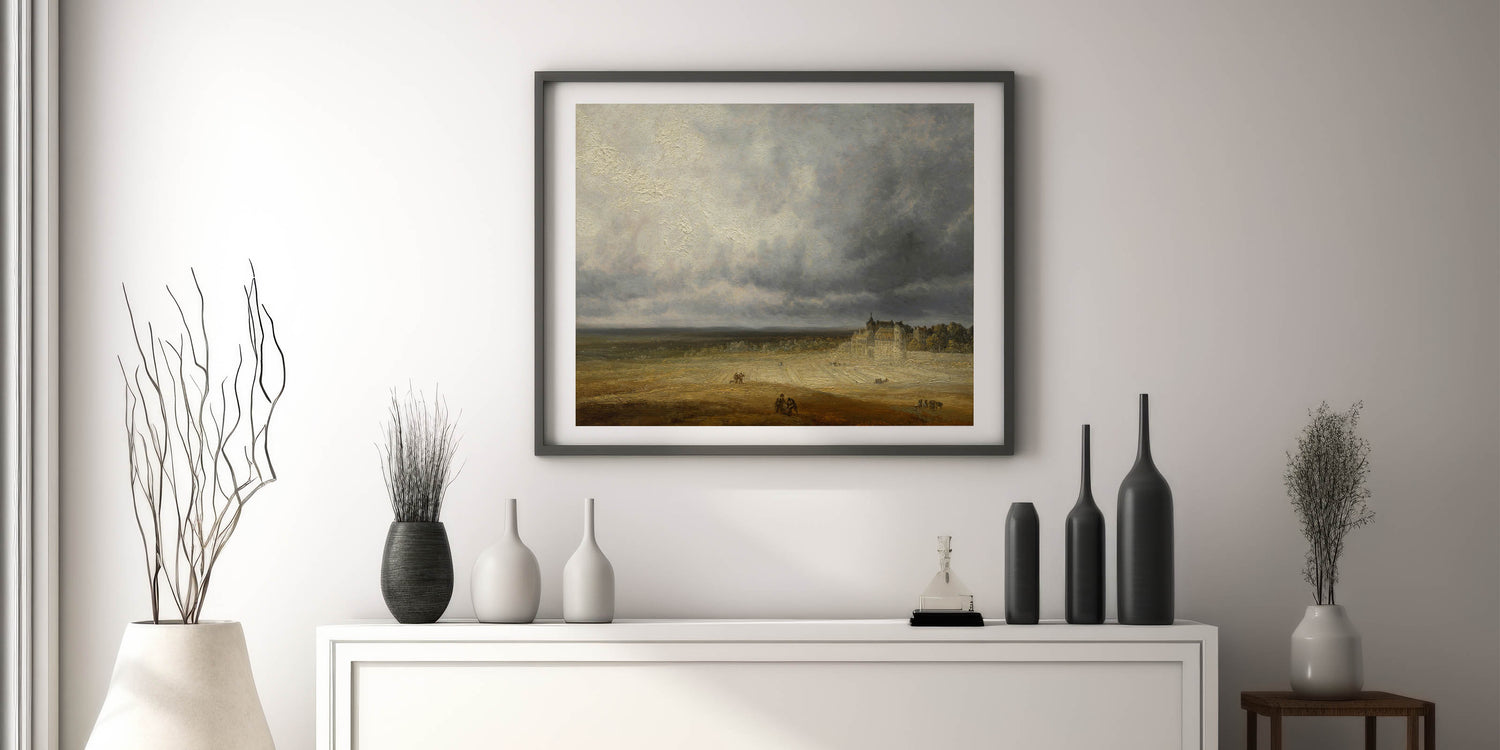 This Romanticism-style wall art perfectly encapsulates the relationship between humanity and the vastness of nature. Whether as a focal point or part of a curated collection, "Landscape with a Plowed Field and a Village" provides a timeless addition to any decor.
