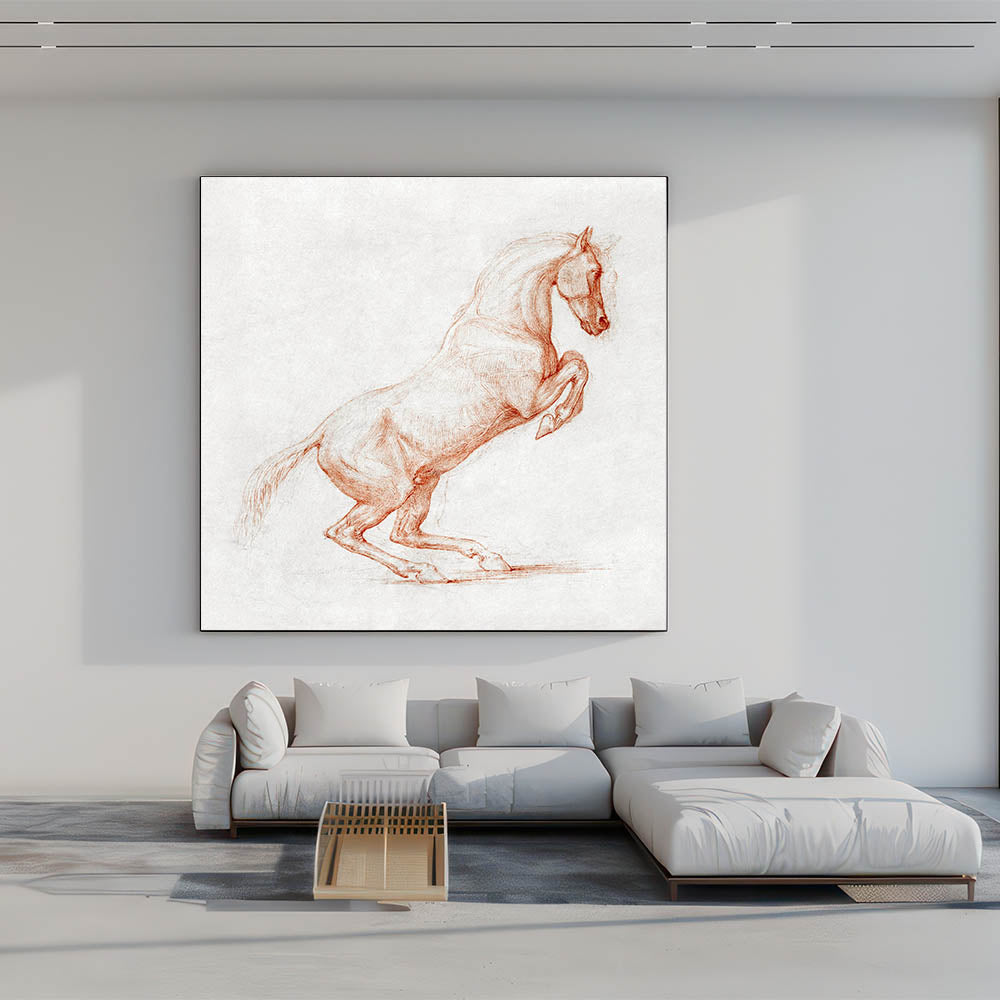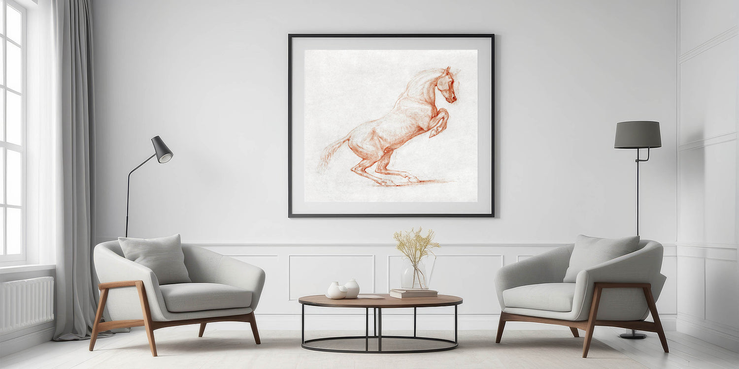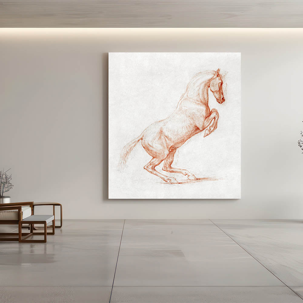 Celebrate the grace and power of equine beauty with George Stubbs’ Prancing Horse Sketch (ca. 1790). Renowned for his mastery of animal anatomy, Stubbs captures the horse mid-prance, combining dynamic movement with refined artistry. This delicate sketch, rendered in soft reddish tones, reflects the Romantic era’s fascination with nature and its raw, untamed elegance. Perfect for lovers of classic art and equestrian themes, this piece brings timeless sophistication to any space.