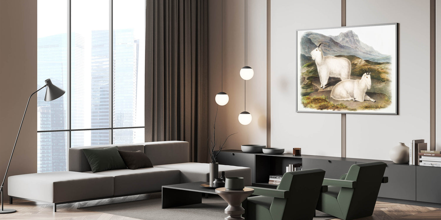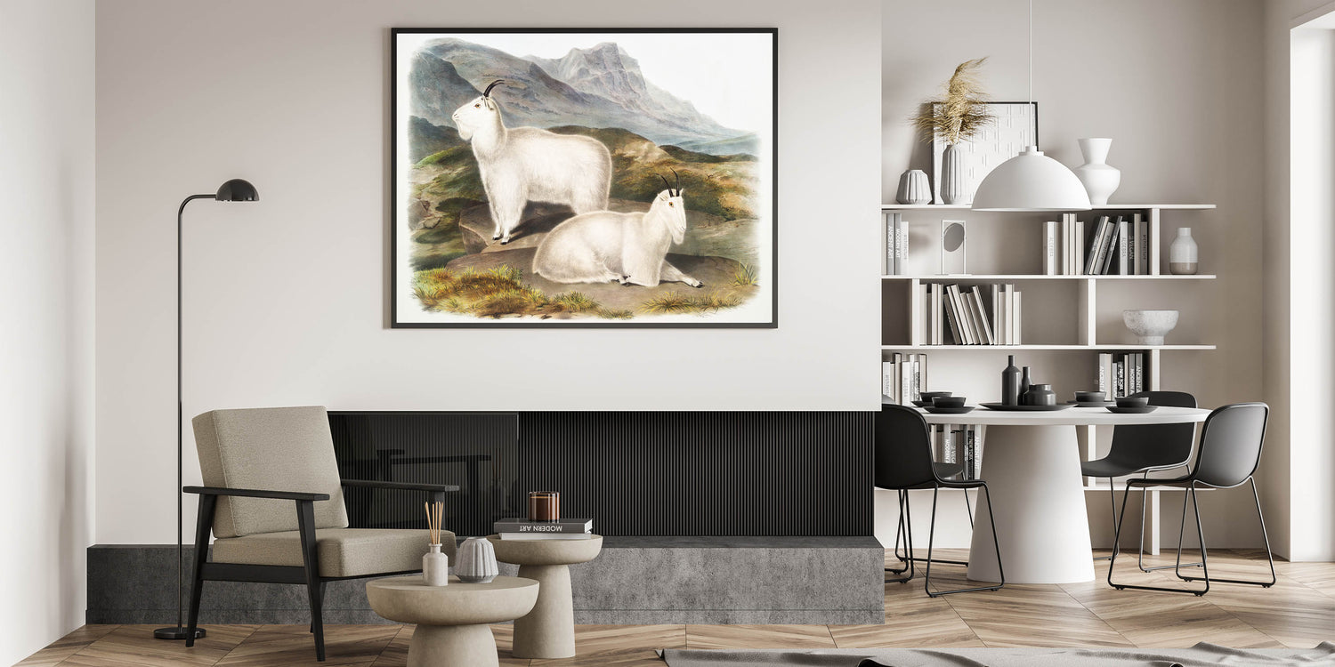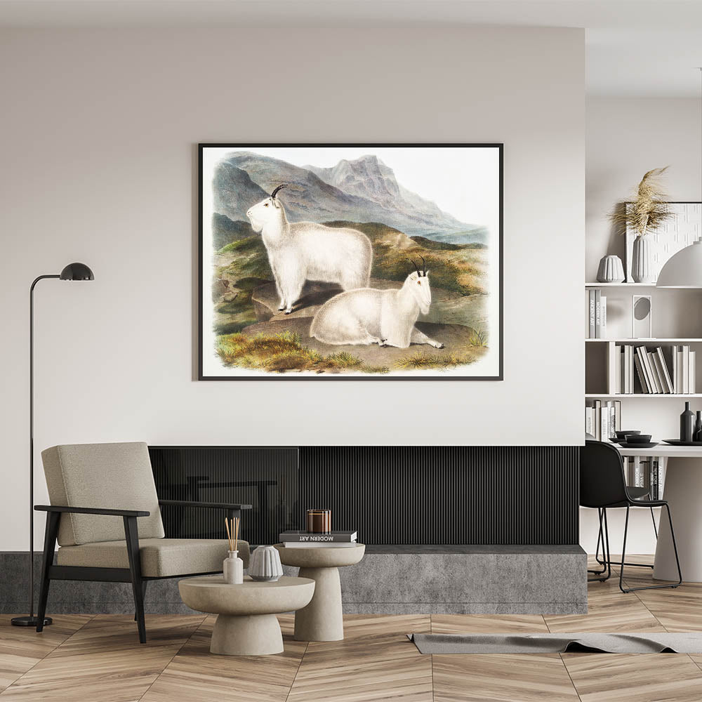 Experience the charm of Romanticism style wall art with this detailed illustration of the Rocky Mountain Goat by John Woodhouse Audubon. Part of the historic "Viviparous Quadrupeds of North America" collection (1845), this artwork captures the beauty of nature through intricate detail and lifelike rendering, embodying the essence of the Romantic era.