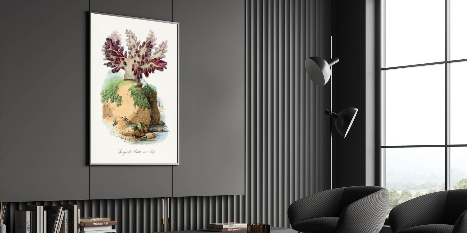Add a touch of nature’s wonder and Romanticism elegance to your walls with this beautifully detailed Spongode Coral Study from Paul Gervais' 1842 edition of Le Jardin Des Plantes. This stunning botanical artwork showcases the intricate forms and vibrant hues of coral against a serene coastal landscape. A true testament to the Romantic era’s fascination with the natural world, it merges science and art into a timeless masterpiece.