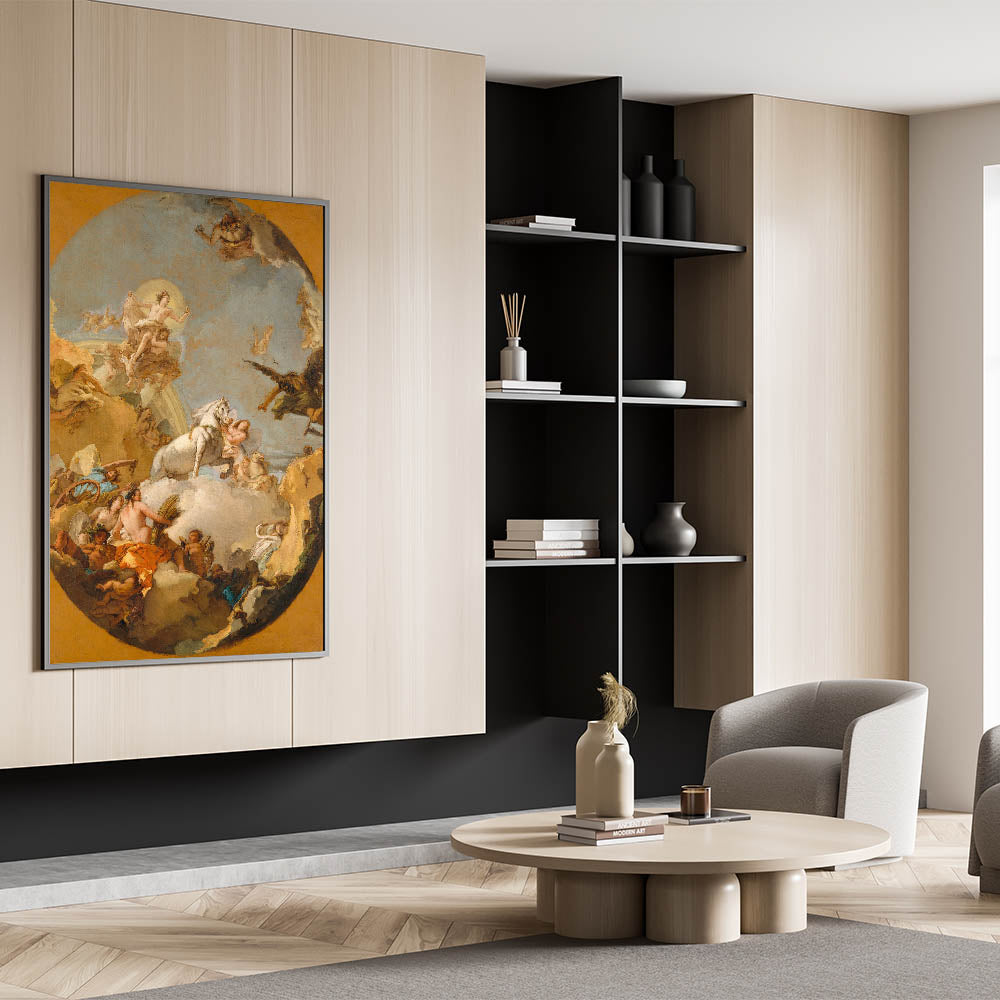This exquisite Romantic art for home décor is a must-have for lovers of classical art, mythology, and Tiepolo's breathtaking frescoes. Let this masterpiece elevate your interior with its timeless charm and celestial grace.