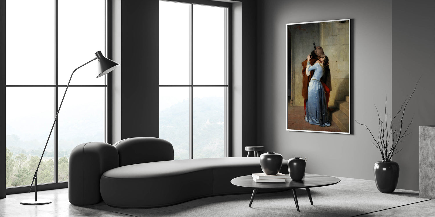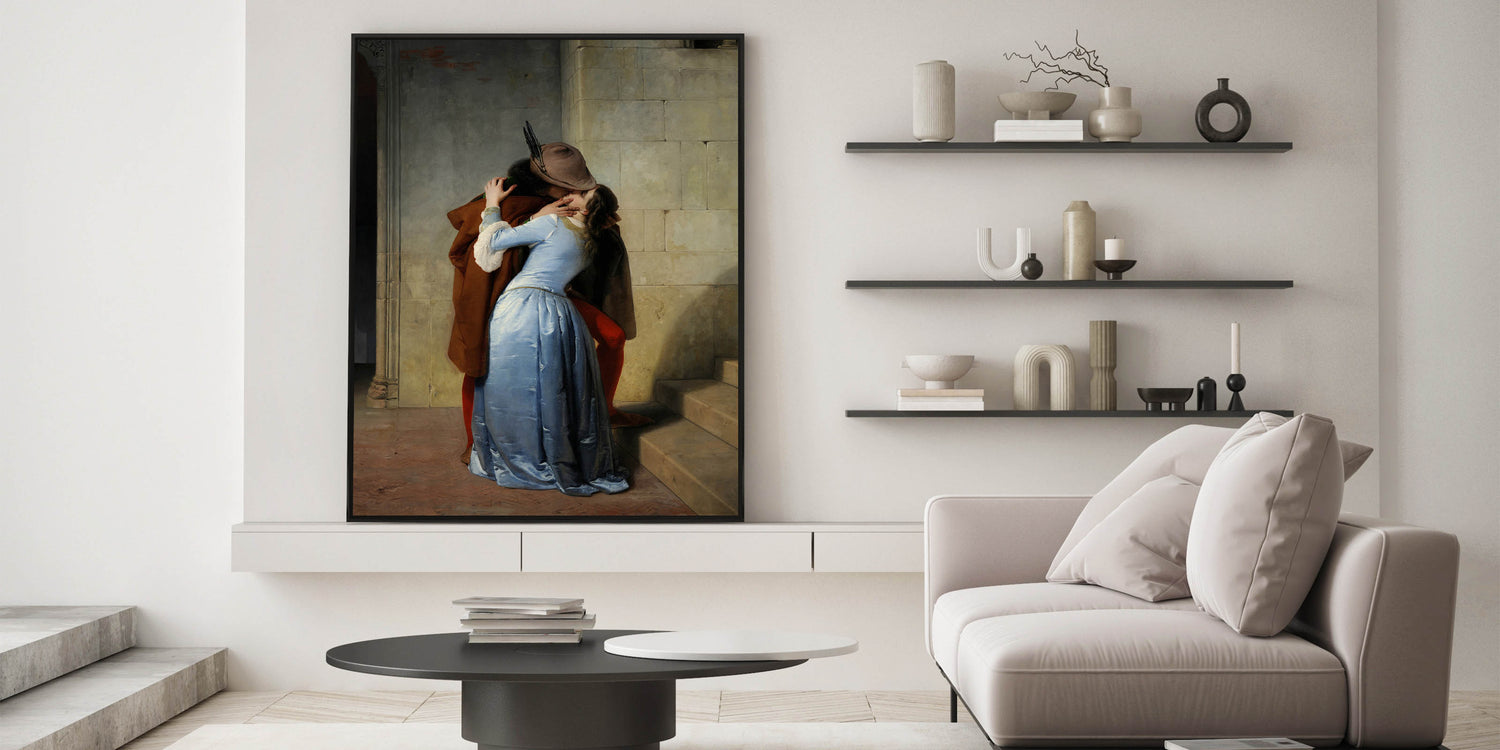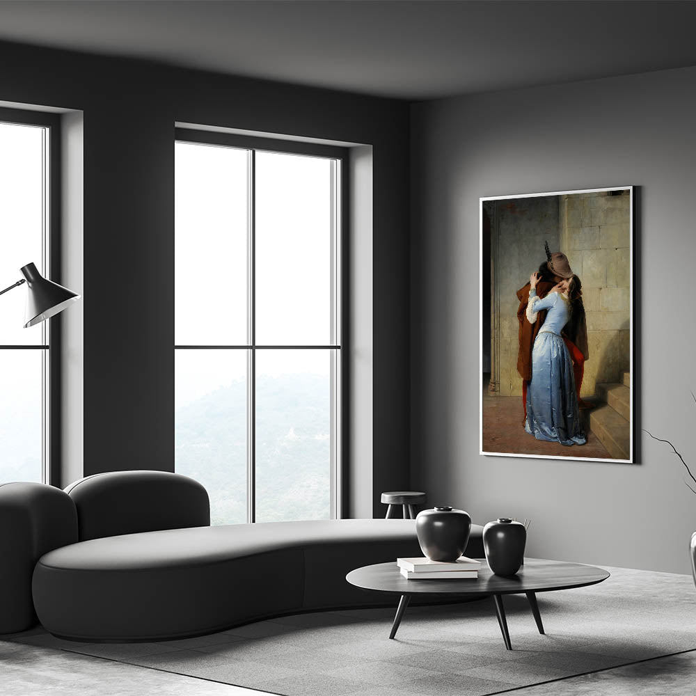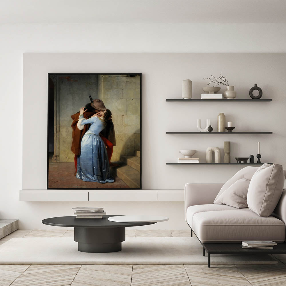 Celebrate the beauty and passion of the Romantic era with this exquisite artwork, "The Kiss," inspired by Romanticism's timeless emotional depth. This iconic painting captures an intimate moment, evoking a sense of love, longing, and dramatic intensity, all hallmarks of Romanticism.