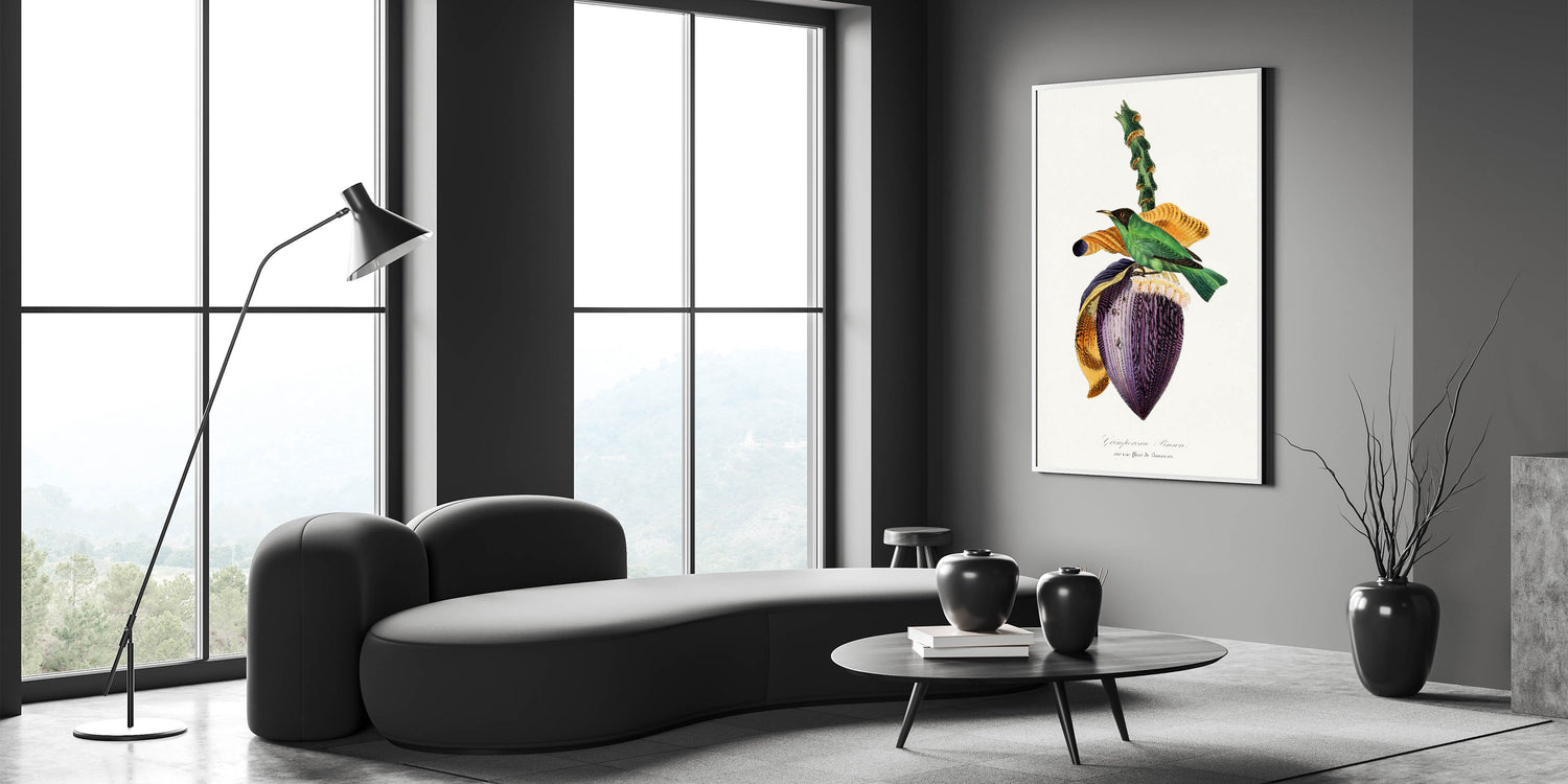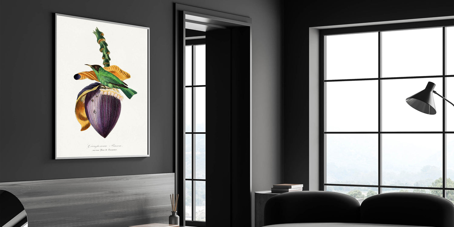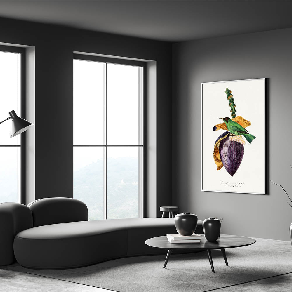 Celebrate the beauty of nature and the Romanticism era with Treecreeper Bird on Banana Flower, from the 1842 edition of Le Jardin Des Plantes by Paul Gervais. This exquisite artwork features the vibrant Treecreeper bird perched on a striking banana flower, rendered with incredible detail and emotion. The rich colors and harmonious composition embody the Romanticism style wall art, emphasizing the connection between nature and art.