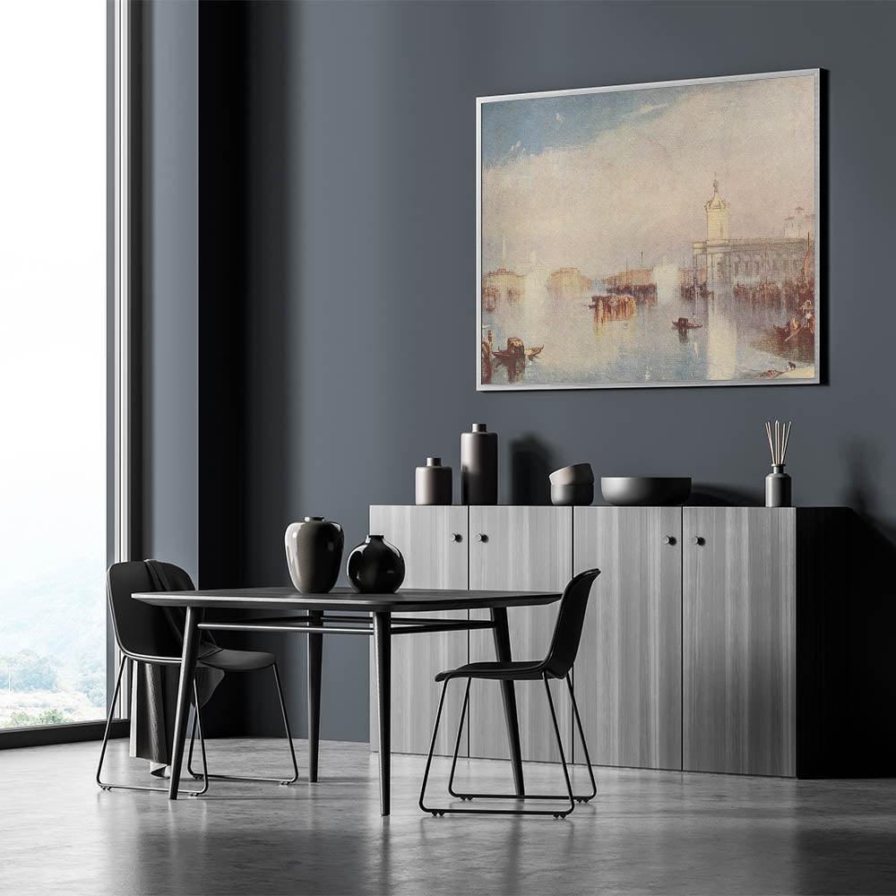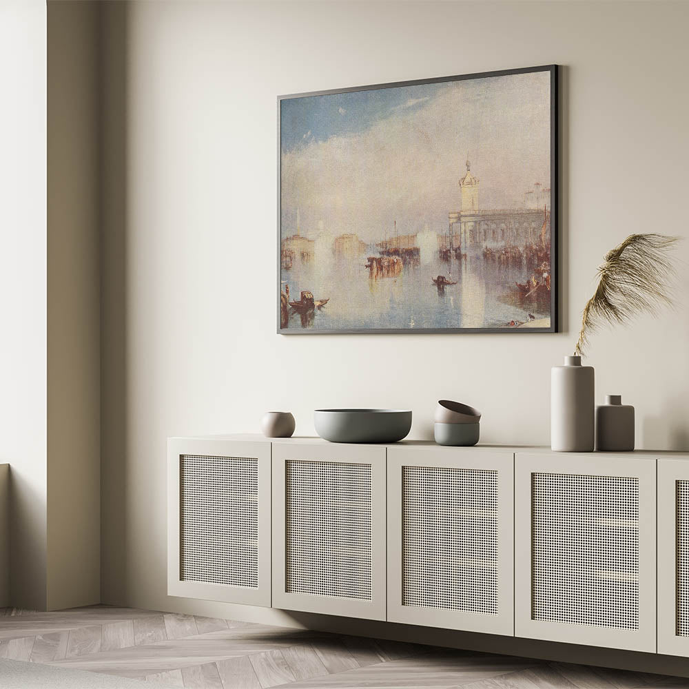 Transport yourself to the enchanting city of Venice with J.M.W. Turner's breathtaking Romantic-era masterpiece, "Venice, The Dogana, San Georgio." This iconic artwork captures the ethereal beauty of Venice with soft light, shimmering waters, and architectural grandeur. A perfect representation of Romanticism's focus on emotional landscapes, this piece evokes serenity and wonder.