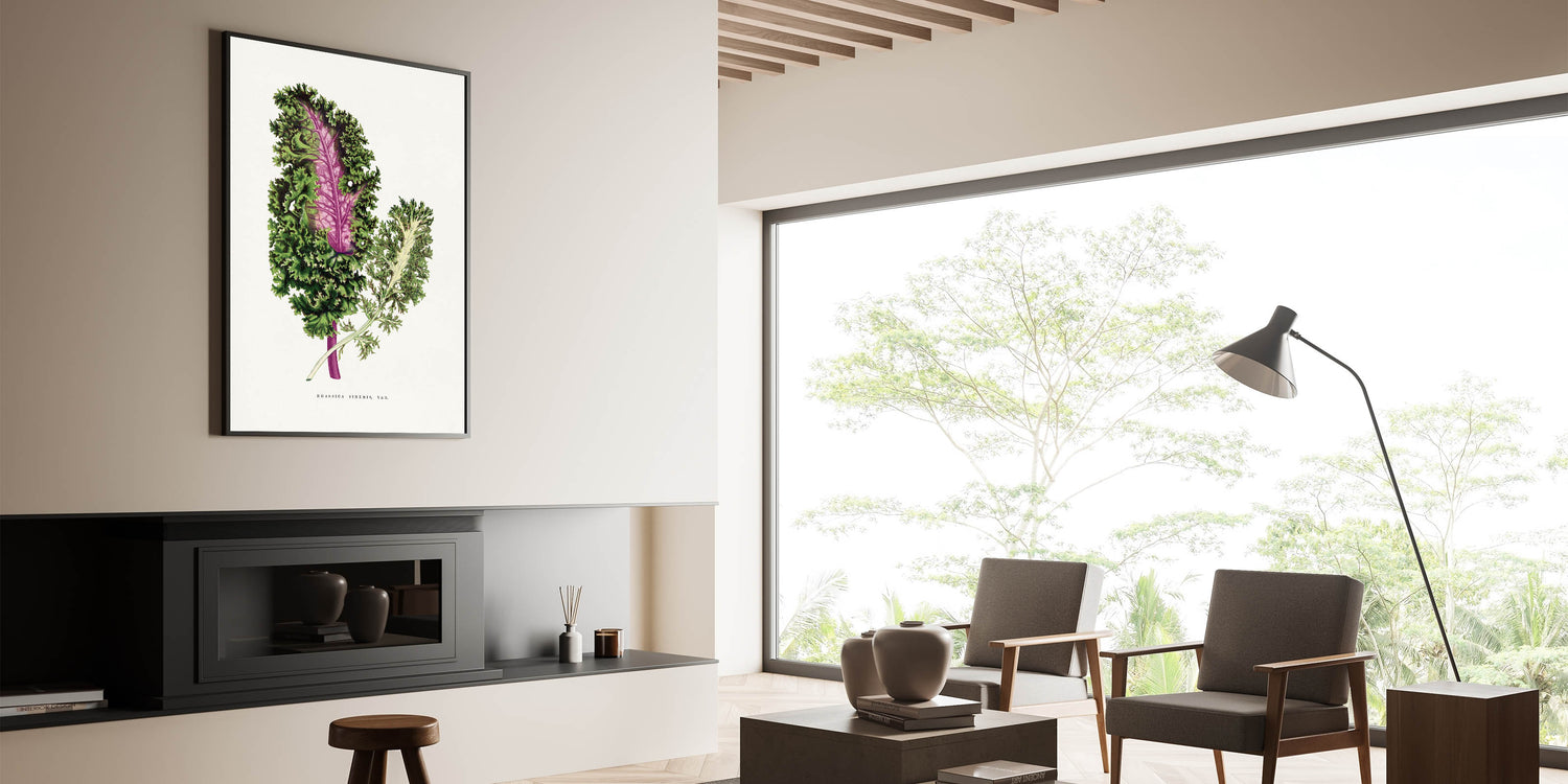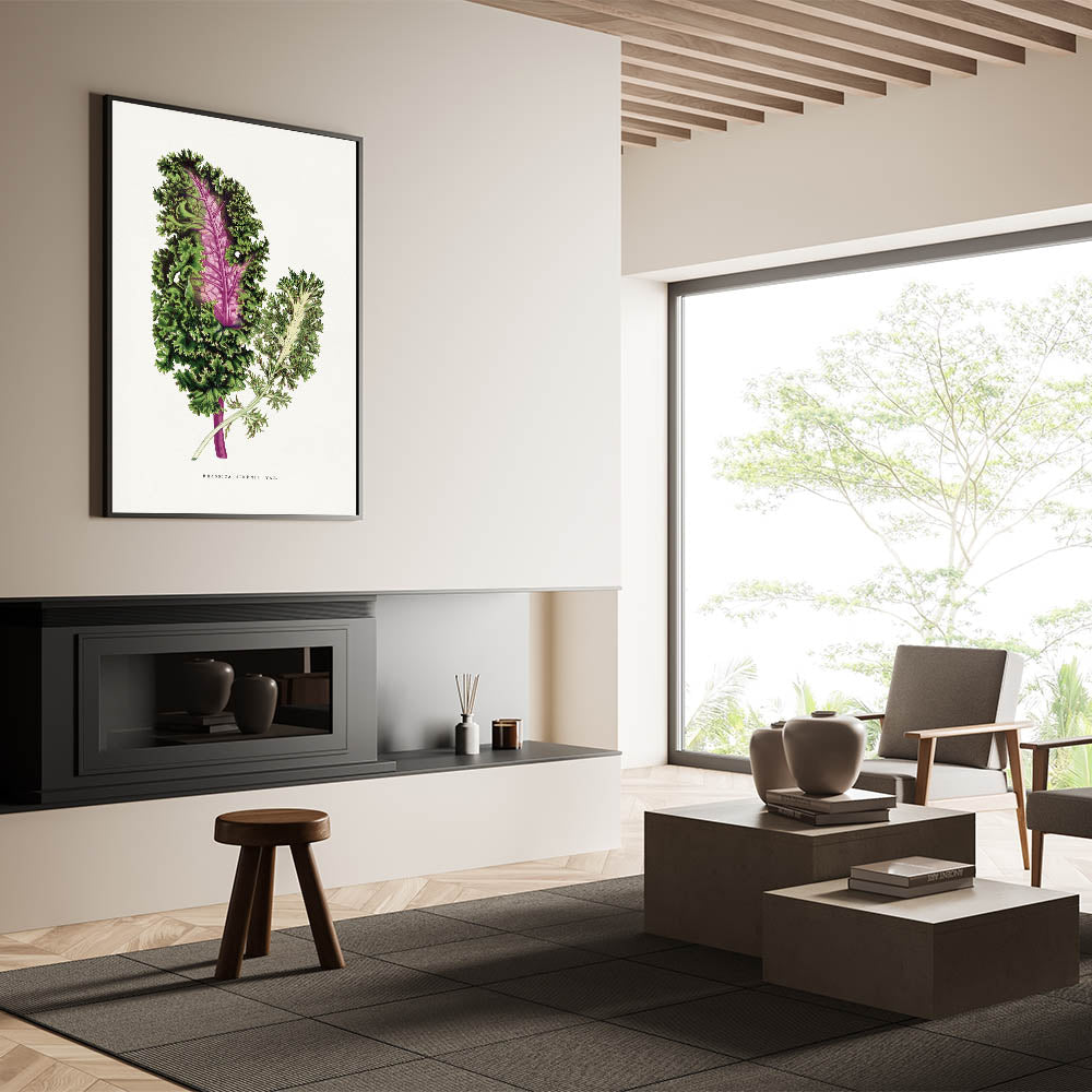 Discover the beauty of nature through this Romanticism style wall art featuring a detailed illustration of wild cabbage leaves. Originally created in the mid-19th century, this botanical artwork combines scientific accuracy with artistic charm, making it a perfect example of classic Romantic paintings. The vibrant green foliage paired with striking purple stems showcases the elegance and richness of Romantic art for home decor.