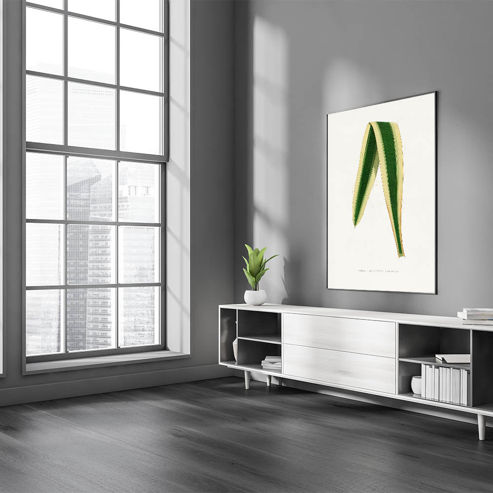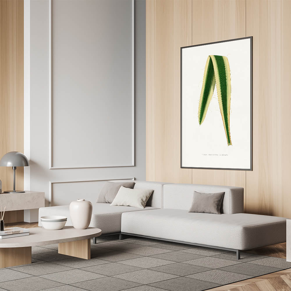 Bring the tranquility of nature into your home with this elegant Romanticism style wall art featuring the Yucca Filamentosa Variegata leaf, beautifully illustrated by Alexander Francis Lydon and Benjamin Fawcett. This timeless artwork, from the 1865 edition of Les Plantes à Feuillage Coloré, reflects the meticulous attention to detail and naturalistic beauty that define the classic art of the Romantic era.