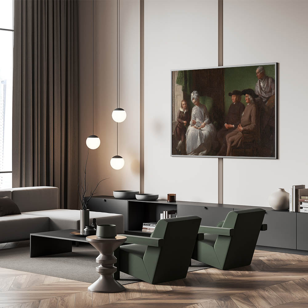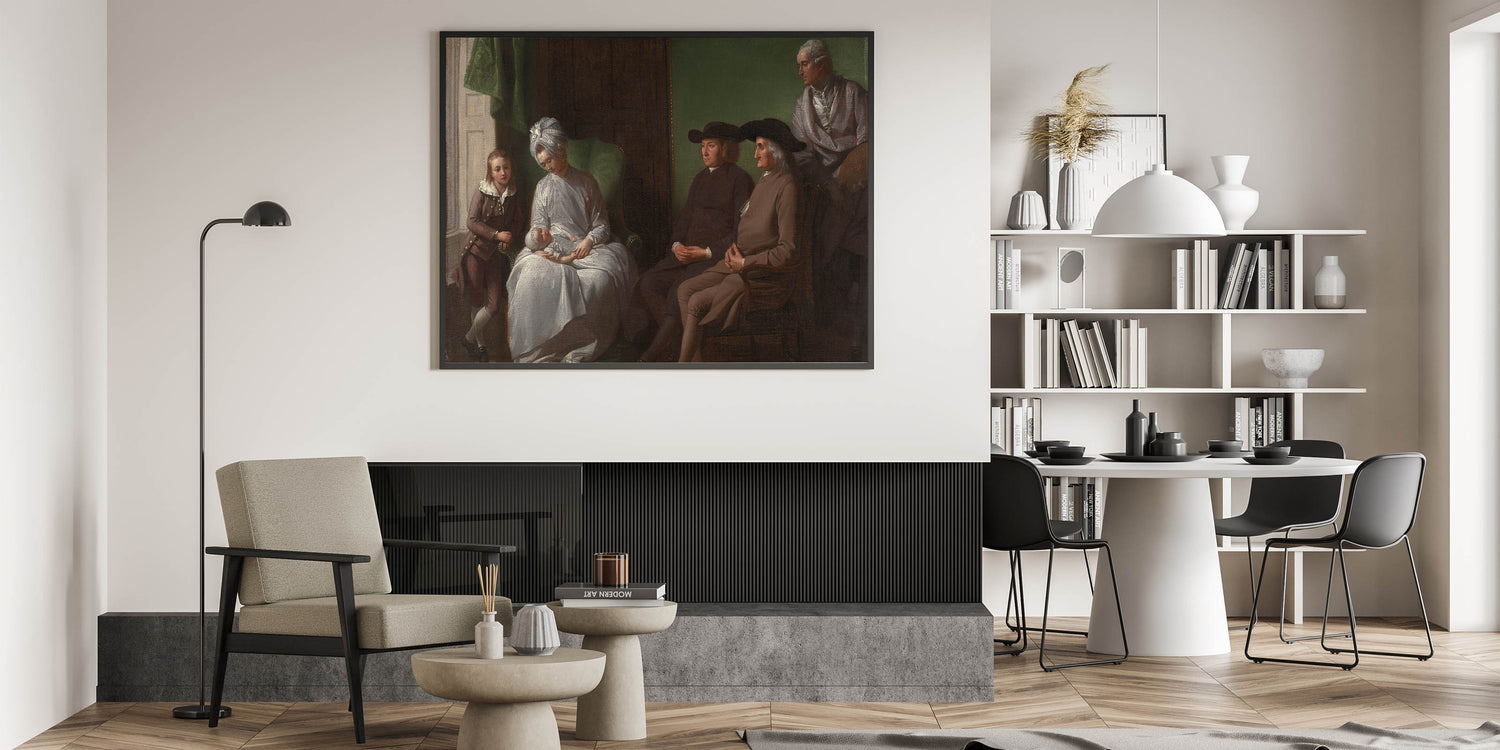 Capture the essence of family and tradition with The Artist and His Family, a masterpiece that embodies the Romanticism style wall art. This painting beautifully illustrates the intimate connection between family members through soft lighting and finely detailed expressions, hallmarks of the classic art of the Romantic era. The rich color palette and careful composition evoke a sense of warmth and timeless elegance, making this artwork a perfect addition to any sophisticated interior.
