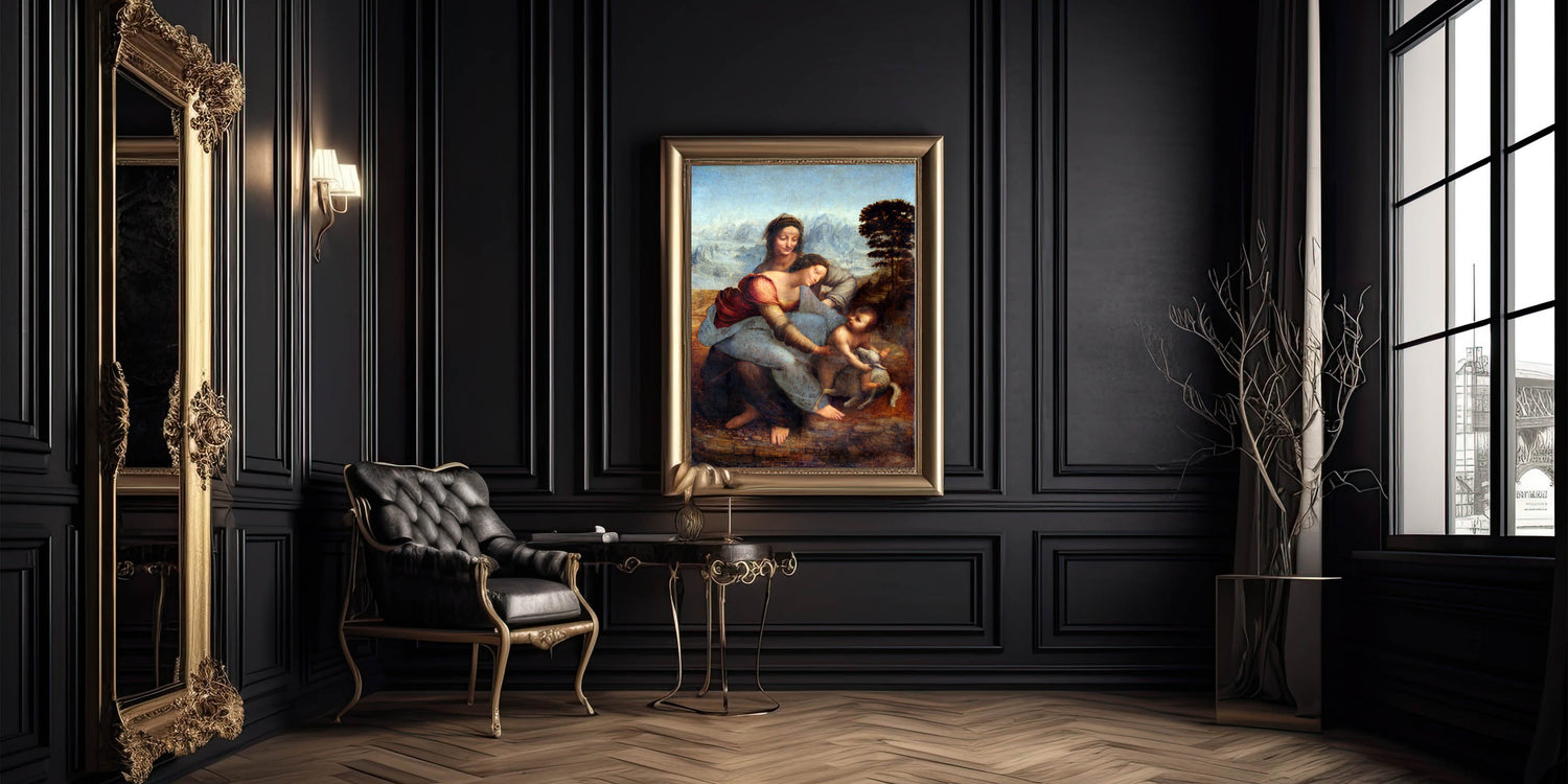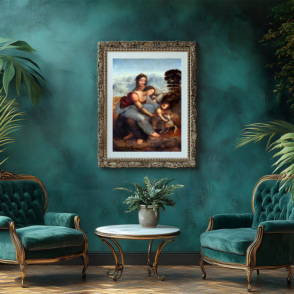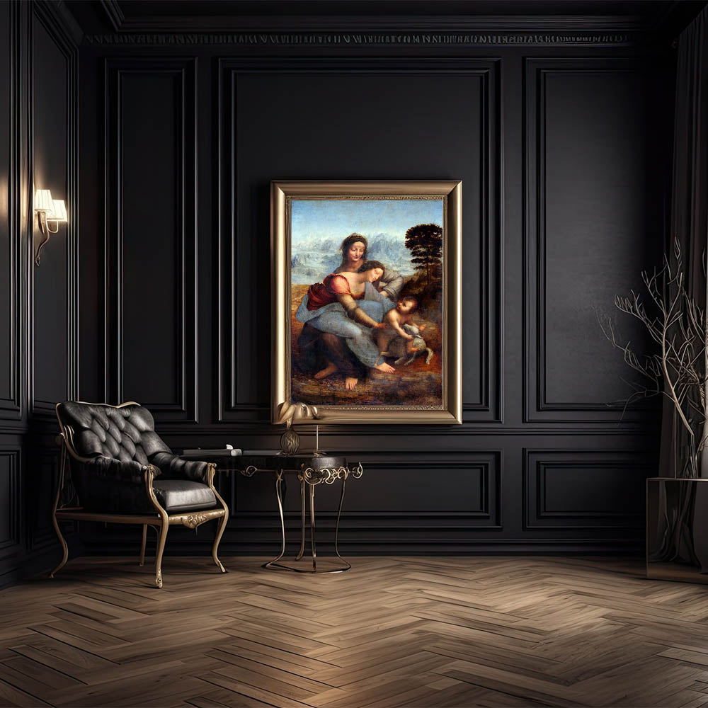 Enrich your space with The Virgin and Child with Saint Anne, a masterpiece by Leonardo da Vinci that exemplifies the pinnacle of Renaissance artistry. This painting portrays the Virgin Mary with her mother, Saint Anne, and the Christ Child, beautifully capturing themes of love, faith, and familial devotion. The intricate details, soft tones, and masterful composition highlight da Vinci's unparalleled genius.