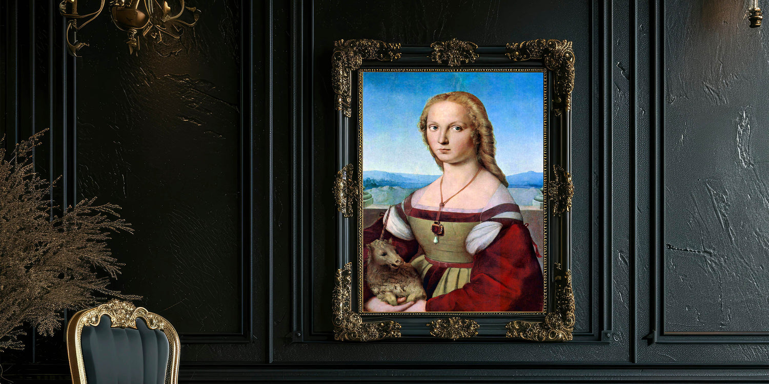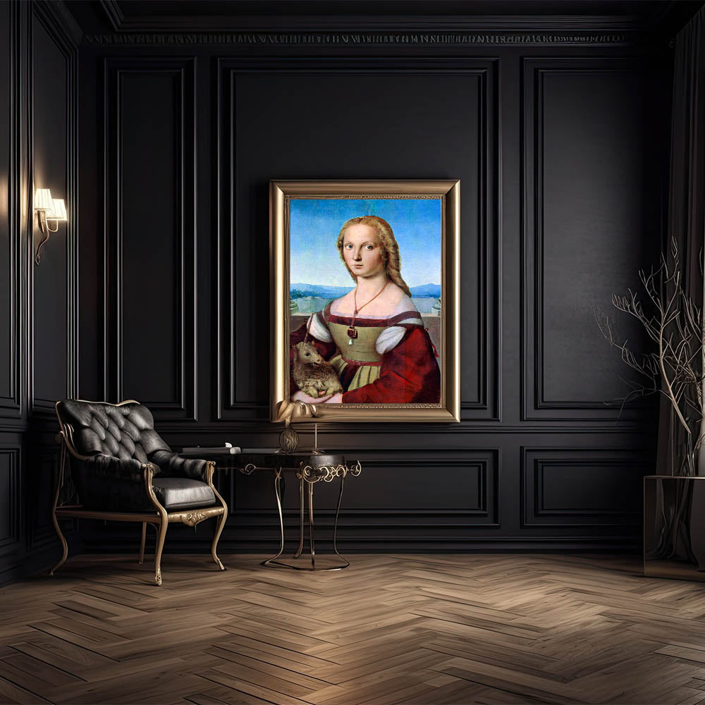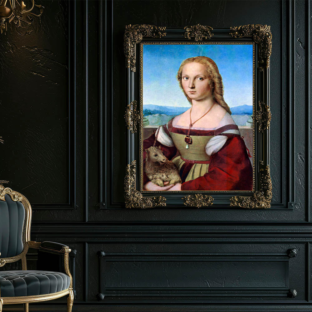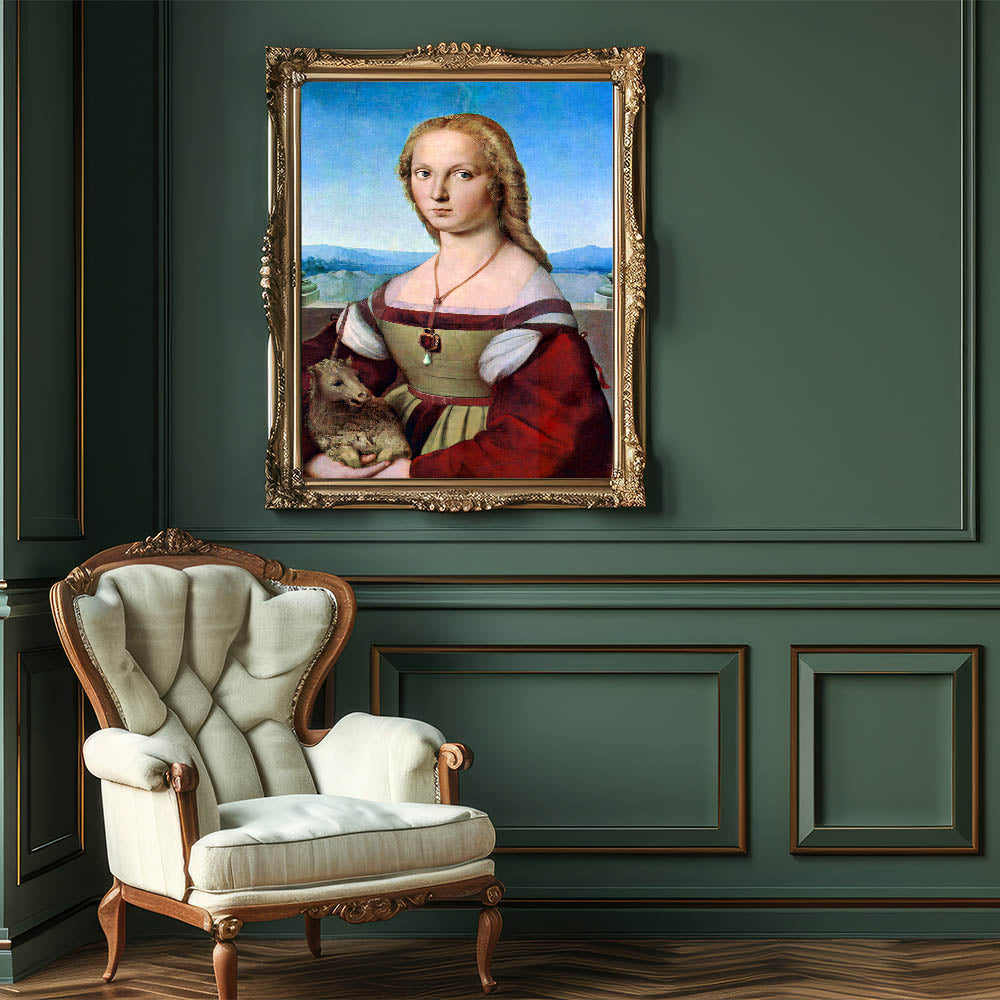 Immerse yourself in the enchanting beauty of Young Woman with Unicorn, a Renaissance masterpiece by Raphael. This artwork radiates elegance, mystery, and the refined artistry of the Italian Renaissance, portraying a serene woman with a unicorn—symbolizing purity and grace.