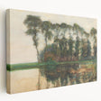 Transform your space with this serene depiction of nature, captured in a modern and minimalist style. "Farmstead Reflections" beautifully portrays a countryside scene, where a cluster of tall trees stand beside a calm, reflective body of water. This piece of modern wall art seamlessly blends earthy tones with soft greenery, making it a perfect addition to trendy home decor and contemporary art pieces.