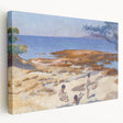 Infuse your home with the serene beauty of this modern wall art featuring a tranquil seaside scene. This artwork captures a picturesque moment by the shore, where children bask in the sun and soft waves lap against the beach. The delicate interplay of blue, beige, and earthy tones creates a soothing yet vibrant palette, making this piece a perfect fit for contemporary and minimalist interiors.