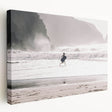 Capture the joy of a sun-filled day at the beach with this vibrant coastal wall art featuring a child running along the shore. The powerful waves crash against the rocky cliffs in the background, while the child carries a bodyboard, ready to dive into the surf. This artwork brings the energy and excitement of seaside adventures into your home, making it perfect for nautical or beach-themed decor. The stunning light and misty ambiance of the scene evoke a carefree spirit, ideal for coastal-inspired living spaces.