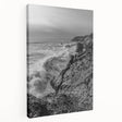 Coastal Wall Art - Black and White Ocean Waves on Rocky Shoreline Print