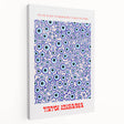 Transform your space with this dynamic contemporary canvas art featuring a vibrant blue circular pattern inspired by Yayoi Kusama's renowned style. The composition showcases a series of concentric circles in various shades of blue, creating a playful and captivating visual effect. The pattern is set against a soft beige background, which adds balance and makes the vivid blue colors pop, making it an ideal choice for modern wall decor that stands out.