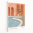 Capture the beauty of contemporary Moroccan architecture with this stunning art print. The artwork features a serene poolside scene framed by warm, earthy tones of terracotta and beige, complemented by a soothing blue pool and lush green plant. The minimalistic yet sophisticated design evokes a sense of calm and elegance, making it perfect for modern interiors. Ideal for living rooms, bedrooms, or even creative spaces, this piece brings a touch of Mediterranean style into your home.