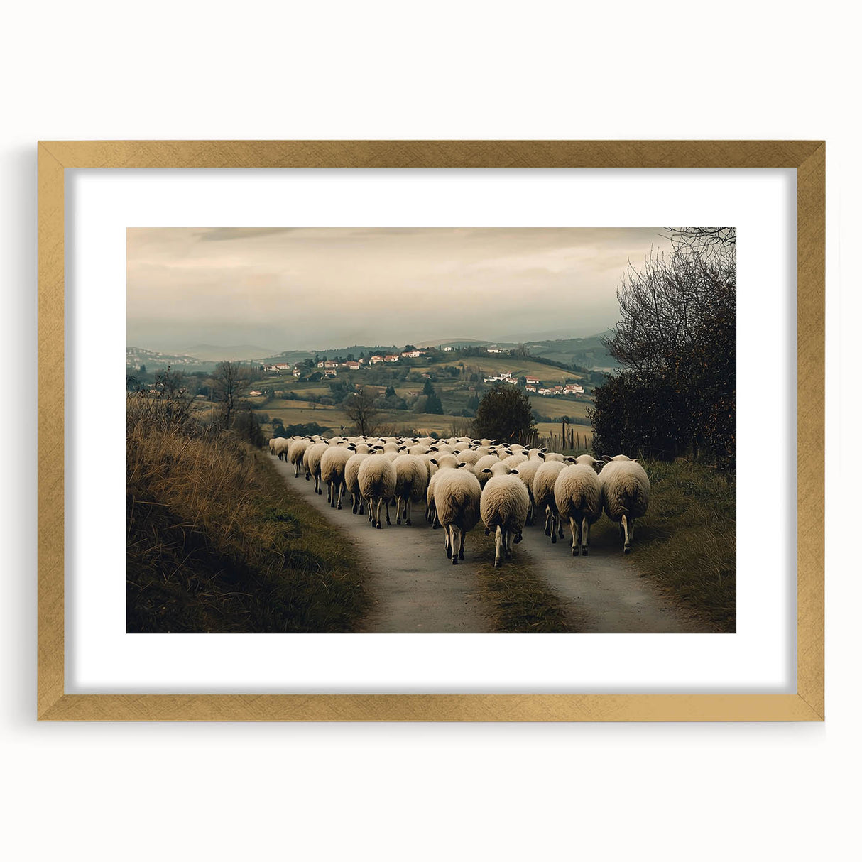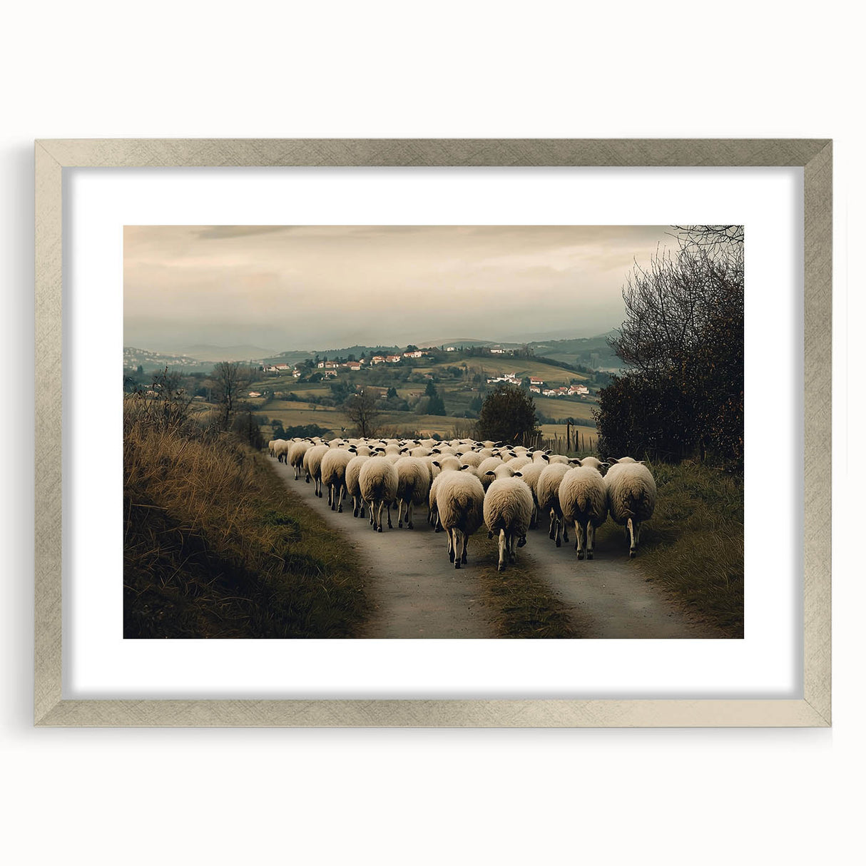 Scenic Countryside Prints - Herd of Sheep on Rustic Pathway