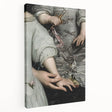 This elegant piece of Dark Academia wall art showcases a close-up view of two intricately detailed hands, each belonging to figures adorned in vintage attire. The soft folds of the clothing, paired with delicate accessories, create an air of mystery and Gothic charm. The meticulous depiction of hands conveys a subtle sense of connection and emotion, making this artwork an ideal choice for those seeking moody aesthetic decor. The piece speaks to the refined tastes of vintage academic prints and Gothic art decor enthusiasts, perfect for adorning studies, libraries, or intimate living spaces.